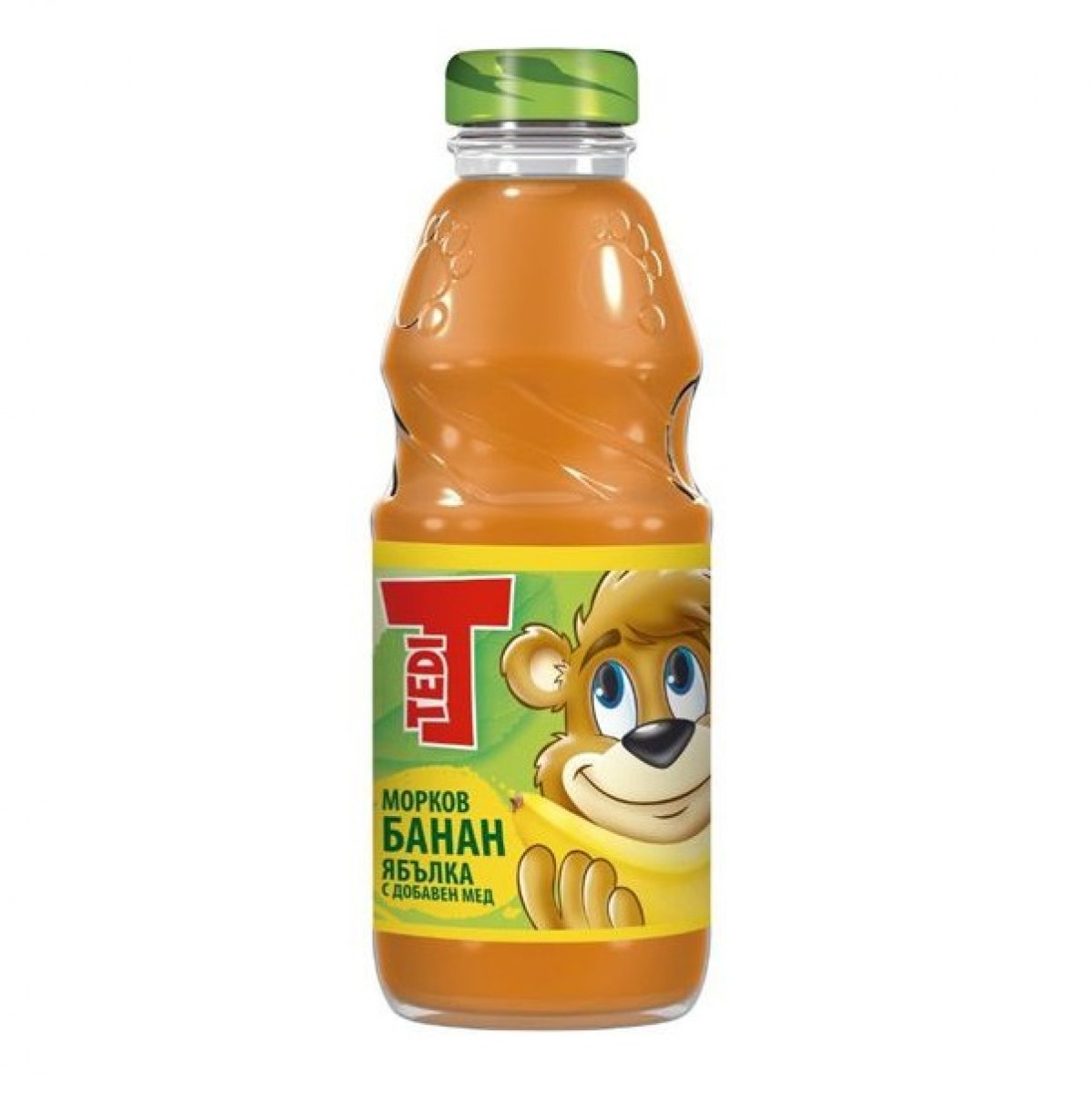 Състав: вода, плодови пюрета 38%, захар и/или глюкозо-фруктозен сироп, мед(25%), регулатор на киселинността - лимонена киселина, витамин С, витамин А