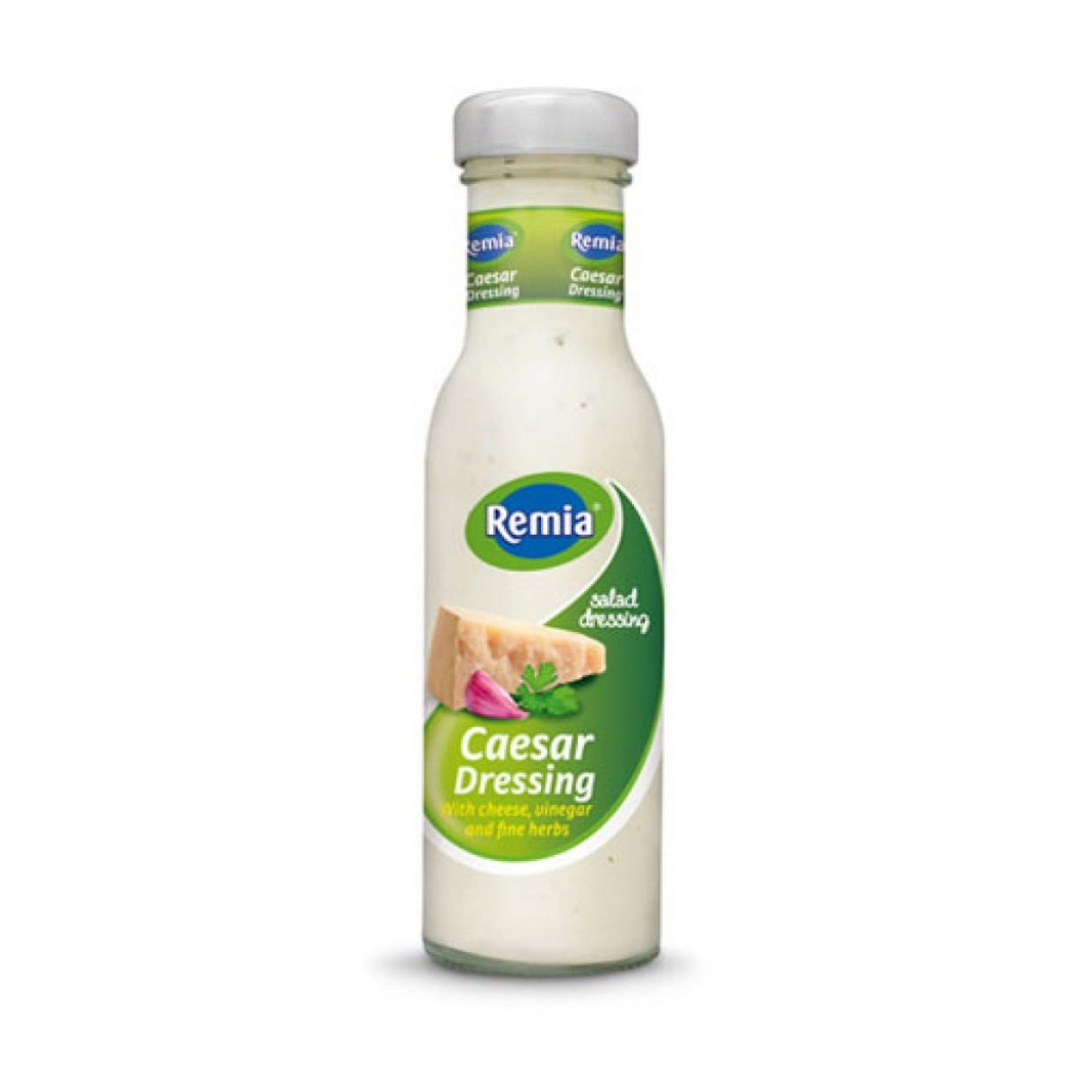 Състав: вода, рапично олио, оцет 5.7%, захар, лимонов сок, модифицирано нишесте, чесън 2.1%ЖЪЛТЪЦИ ОТ ЯЙЦА НА СВОБОДНИ КОКОШКИ, сол, царевично нишесте, СИРЕНЕ НА ПРАХ, МЛЯКО НА ПРАХ, палмова мазнина, сол 1%, лук, АНШОА 0.4%, листни подправки, сгъстител гума гуар и ксантова гума, овкусител : екстракт от лук, подправки, консерванти: калиев сорбат