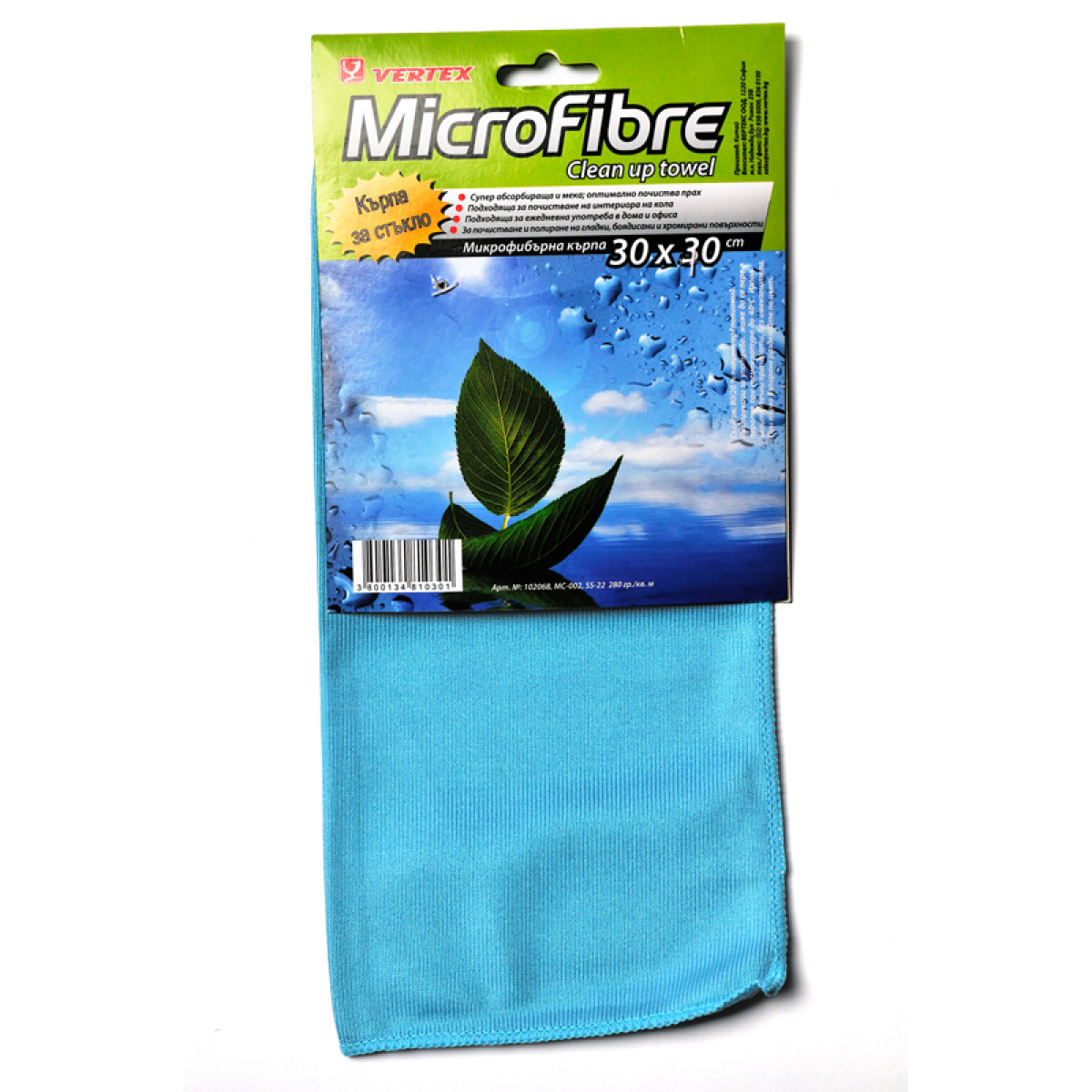 микрофибърна кърпа за стъкло синя 30х30 102068