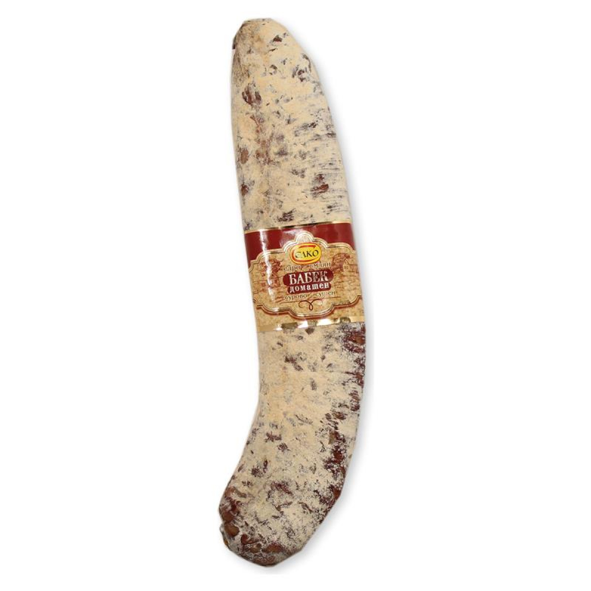 Състав: свинско месо 100%, сол до 3%, консервант Е250, антиоксиданти Е300, Е301, смес от подправки, захари.
