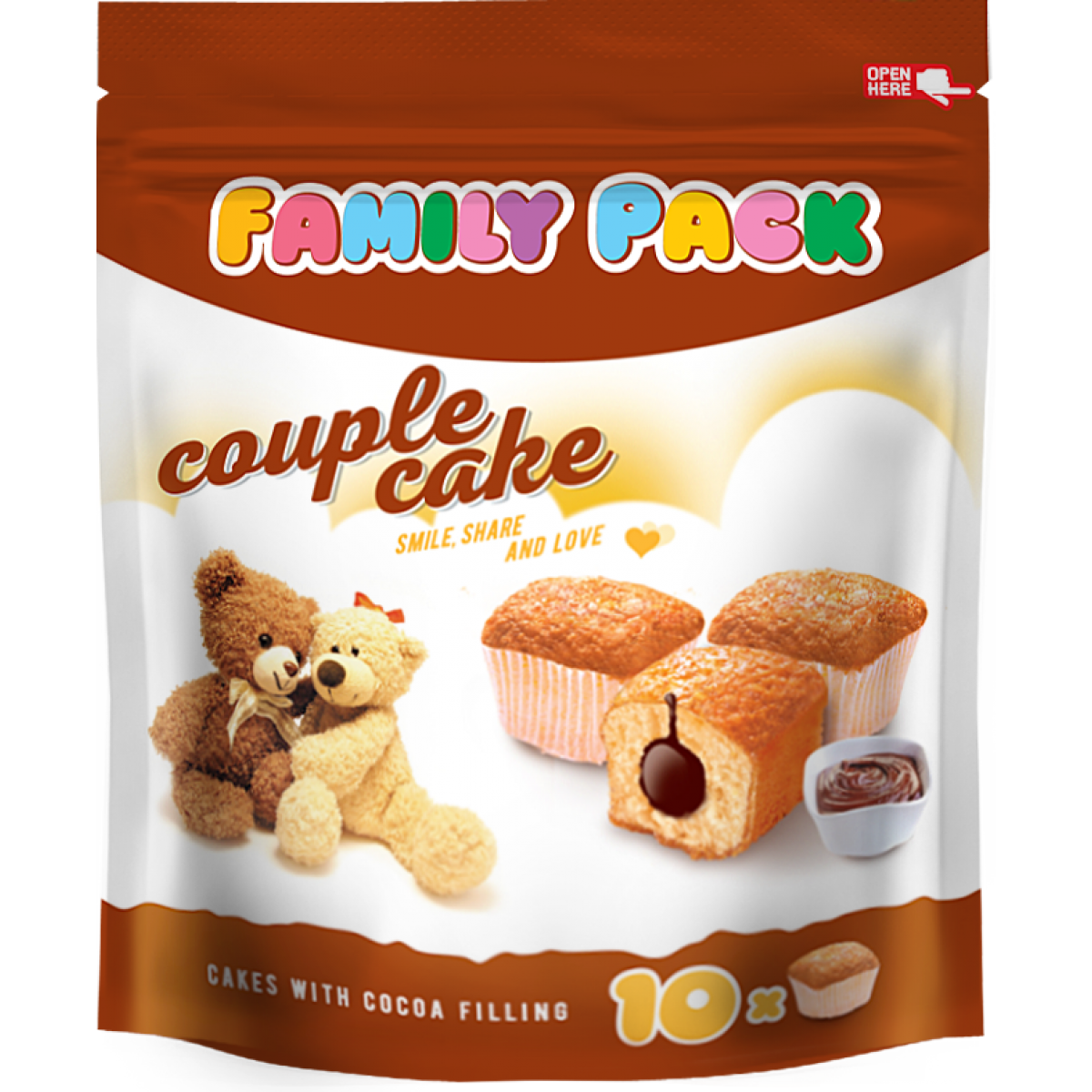 Състав: захар, бяло пшенично брашно, частично хидрогенирани растителни мазнини (палмово масло), вода, сироп от глюкоза, яйчен прах, шоколадови парченца 4% (захар, какаово масло, какаова маса, емулгатор: соев лецитин), какао на прах с редуцирани мазнини 2,4% , кафява захар, овлажнители: пропилен гликол, глицерин; набухватели: динатриев дифосфат, натриев бикарбонат; емулгатори: моно-, ди и полиглицерол естери на мастни киселини; сгъстители: модифицирано царевично нишесте, целулоза, ксантанова дъвка; морска сол, карамелизирана захар, регулатор на киселинността: лимонена киселина; консервант: калиев сорбат; аромати. Съдържа: глутен, яйца и соя. Може да съдържа следи от лешници и лактоза.