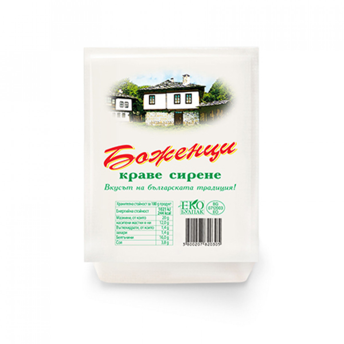 Краве сирене „Боженци” е произведено от свежо пълномаслено краве мляко, доставено от подбрани ферми, с добавка на закваска от млечнокисели микроорганизми, подсирено с мая за сирене, получило необходимата технологична обработка и претърпяло процес на зреене не по-малко от 45 дни.