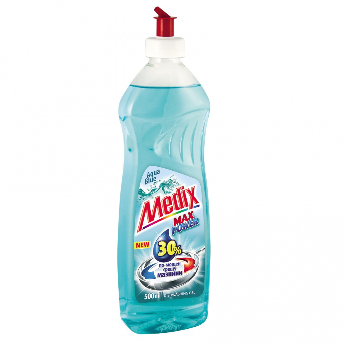 Ултра концентриран препарат за измиване на съдове MEDIX – мощен срещу мазнини и засъхнали остатъци от храна. Активните съставки и дълготрайна пяна осигуряват ефикасно измиване за блестящи от чистота съдове и прибори.