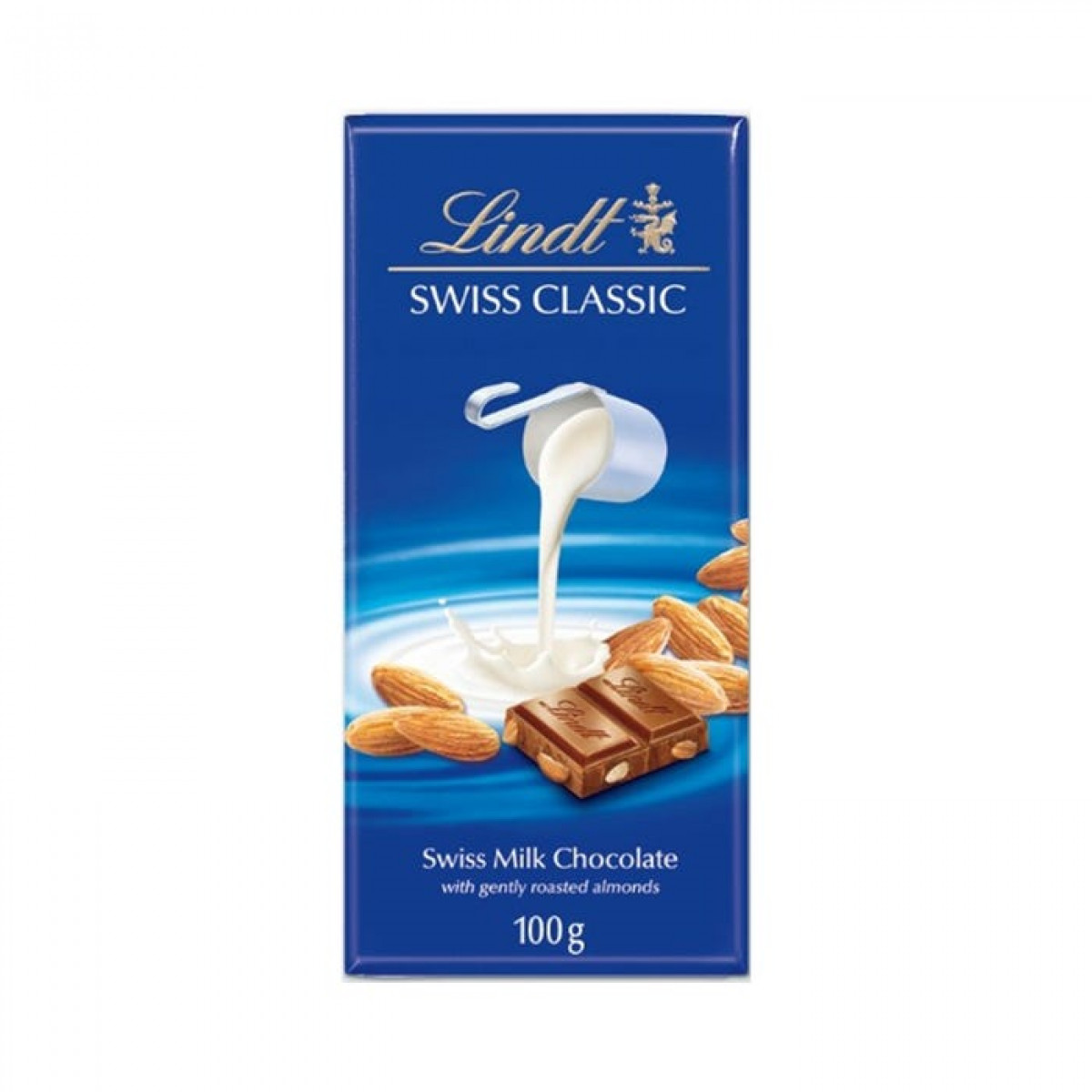 шоколад линдт млечен с парчета бадеми 100гр