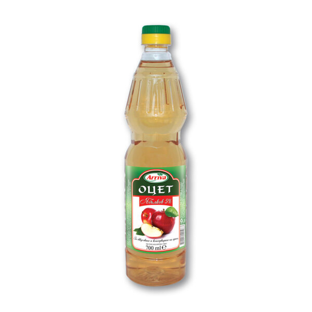 Състав: ябълков оцет, получен чрез оцетнокисела ферментация.. Съдържа сулфити. Обща киселинност 5%.