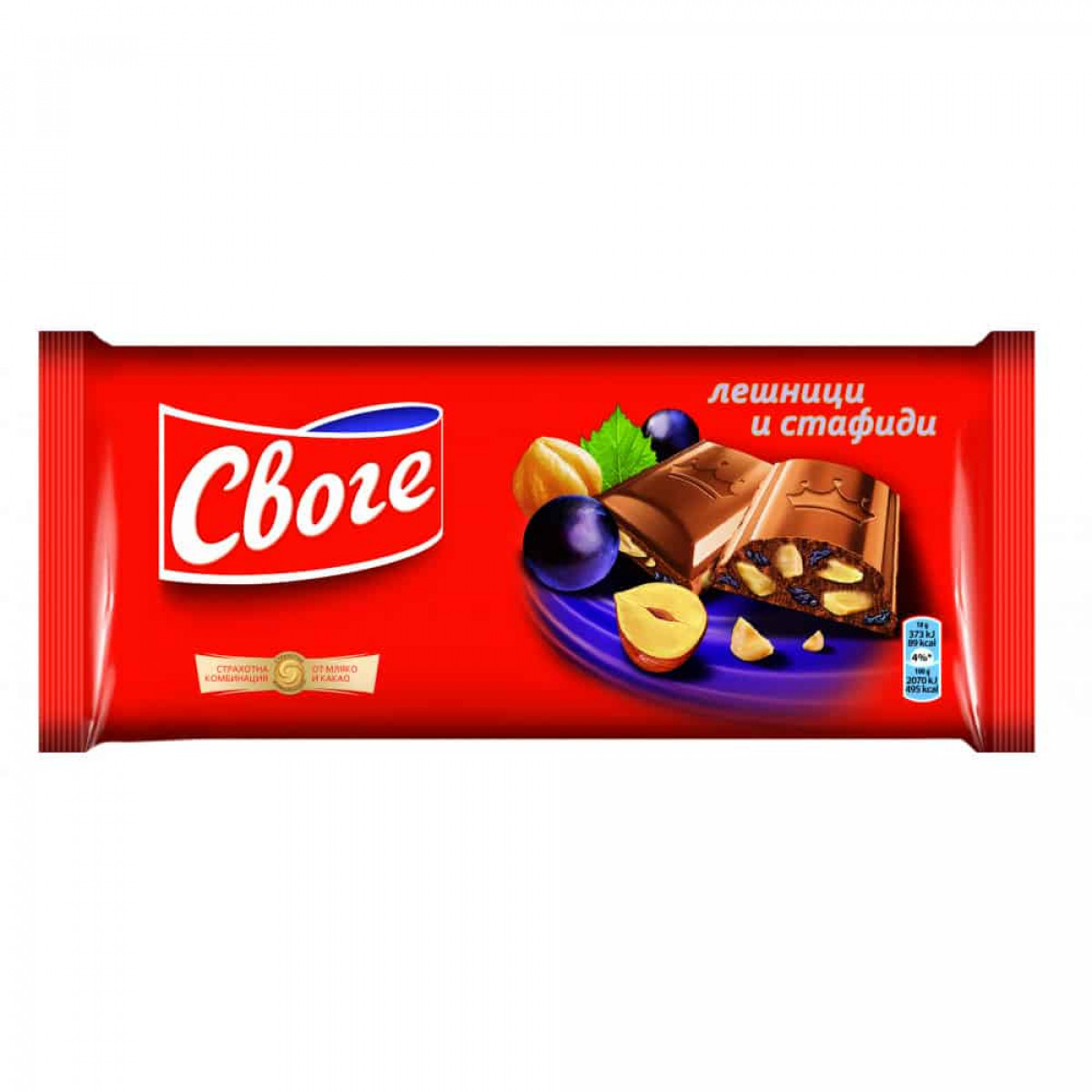 - шоколад своге с лешници и стафиди 90гр.