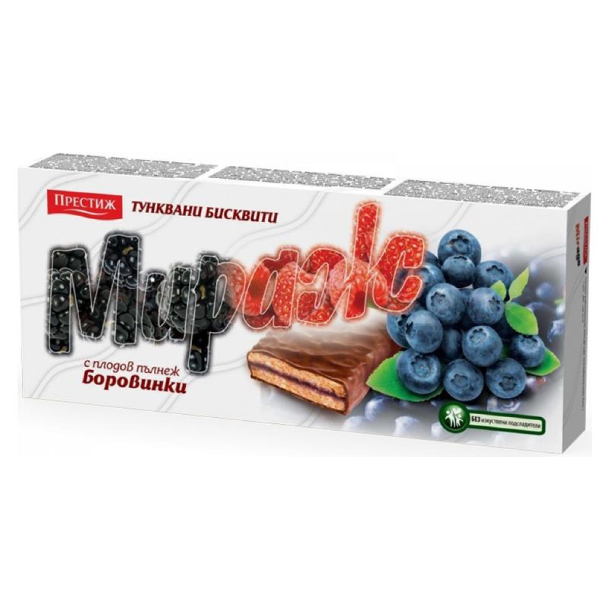 Състав: пшенично брашно, плодов пълнеж горски плод 24% [глюкозо-фруктозен сироп, боровинки 10%, ябълково пюре, захар, сгъстител: нишесте, желиращ агент: пектин, регулатор на киселинност: лимонена киселина, консервант: калиев сорбат, оцветител: антоцианин, ароматизант], какаова глазура 24% [захар, растително масло (палмово), обезмаслено мляко на прах, какао на прах с намалено маслено съдържание 2%, суроватка на прах, емулгатор: соев лецитин, ароматизант], захар, растително масло (палмово), глюкозен сироп, обезмаслено мляко на прах, набухватели (натриев хидроген карбонат, амониев хидроген карбонат), емулгатор: естери на моно- и диацетилна винена киселина с моно- и диглицериди на мастни киселини, сол, ароматизант.