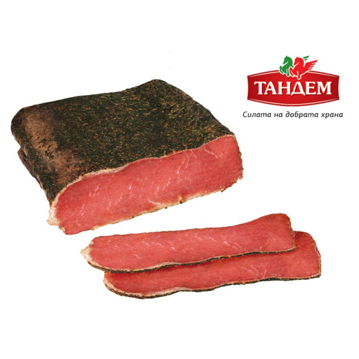 Състав: Свинско филе, сол, захар, консервант: калиев нитрат, антиоксидант: аскорбинова киселина, подправки: чубрица, черен пипер.