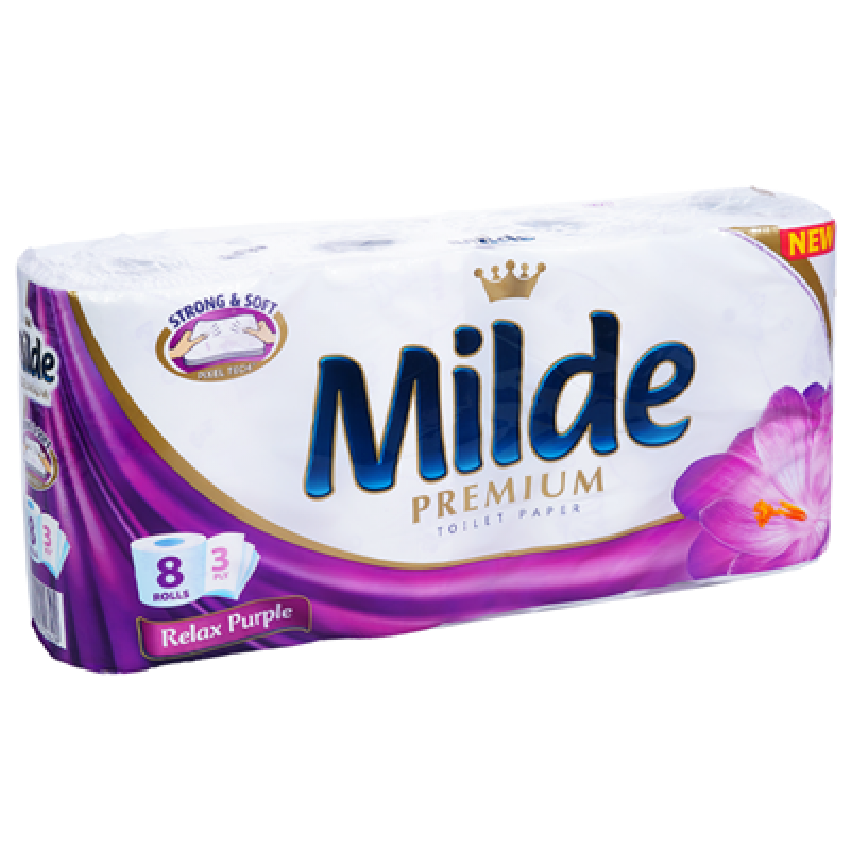 Milde е премиална трипластова ароматизирана тоалетна хартия от 100% целулозен материал. Благодарение на иновативния си релеф тя създава усещане за уникални мекота и плътност.