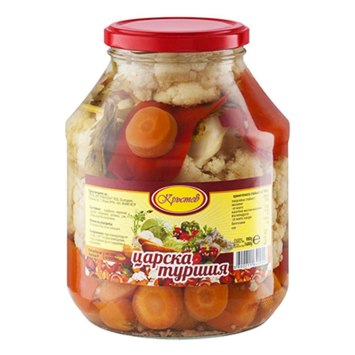 Състав: вода, камби 20%, карфиол 20%, моркови 8%, захар, ЦЕЛИНА, сол, Консервант: оцетна киселина.