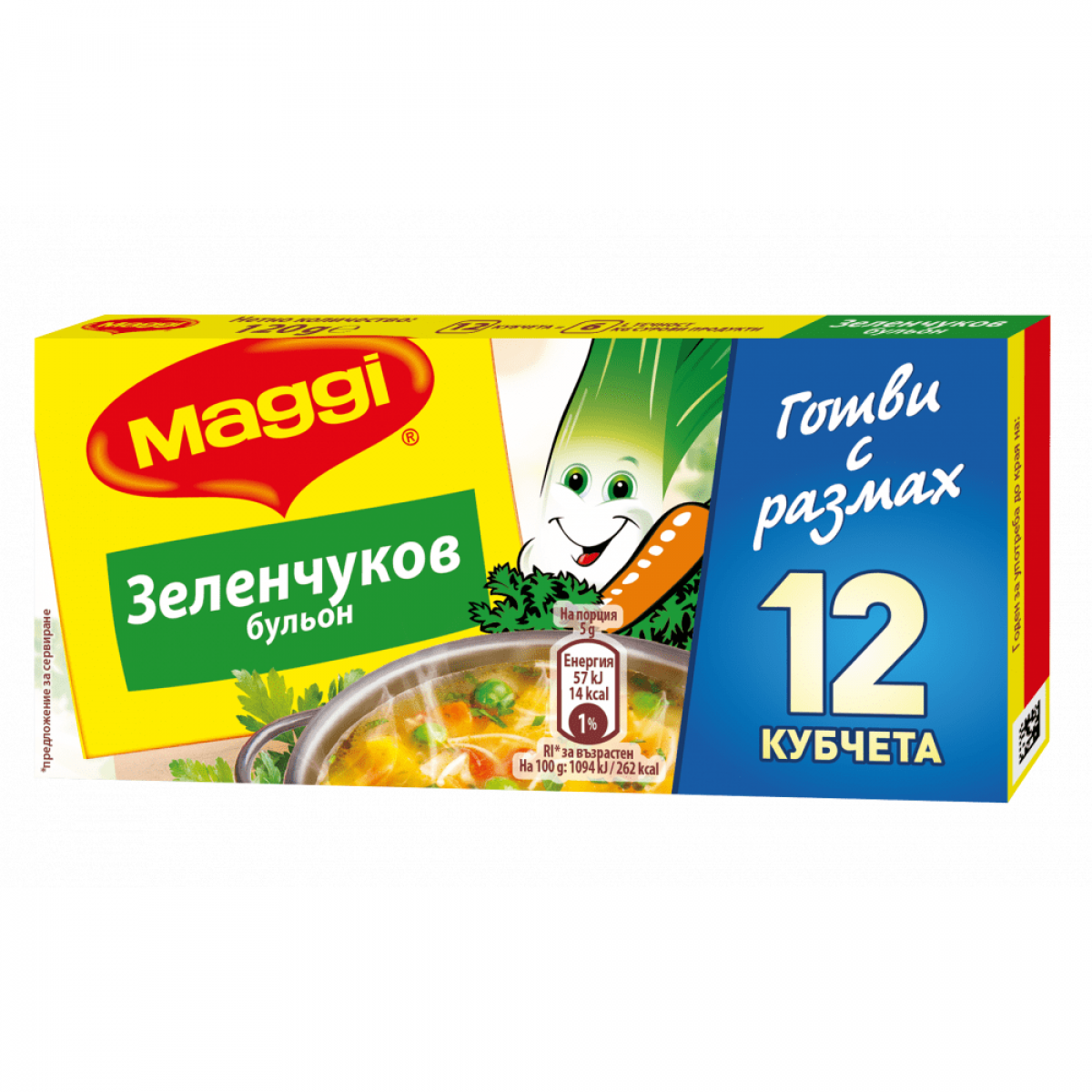 Състав: сол, малтодекстрин, палмова мазнина (палмова мазнина, антиоксидант: екстракти от розмарин), овкусител (мононатриев глутамат), царевично нишесте, изсушени зеленчуци 6.5 % (морков, лук, магданоз, целина), хидролизиран растителен протеин (аромат, пшеничен протеин, сол, палмово масло), изсушен екстракт от мая (екстракт от мая, сол), захар, куркума на прах, аромати (съдържа глутен, целина), къри, екстракт от изсушен чесън. Може да съдържа мляко, яйца, соя и риба.