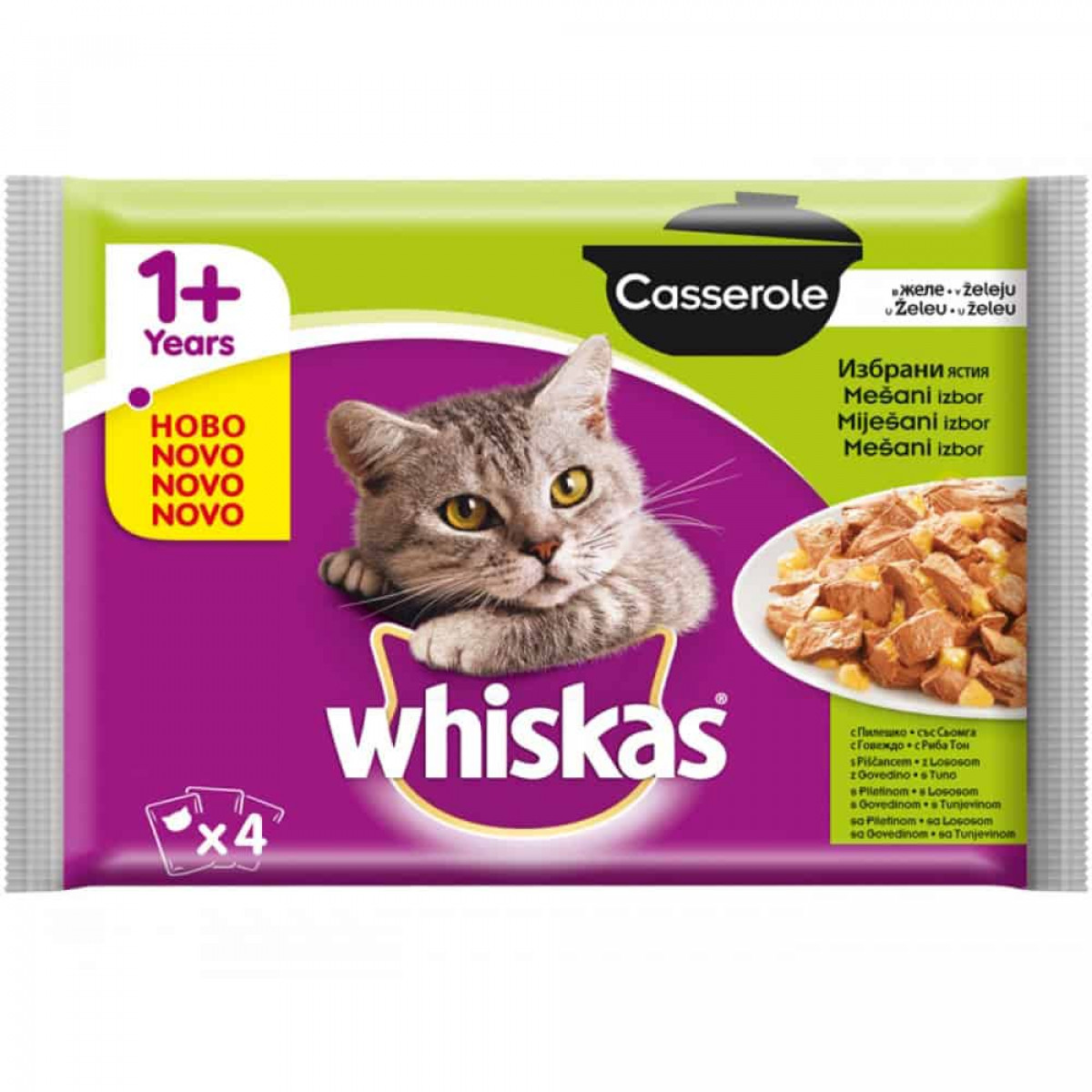 храна за котки уискас пауч касерол микс меню 4х85гр.