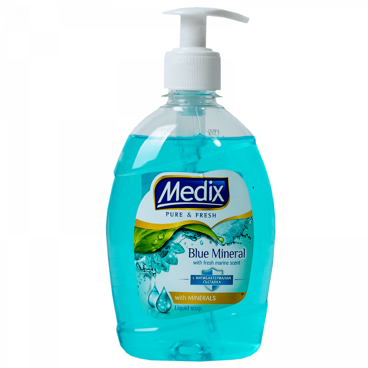 Антибактериален течен сапун Медикс обогатен с минерали и свеж морски аромат.