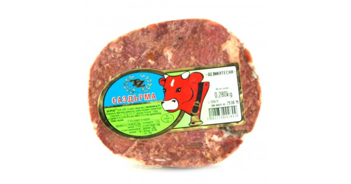Състав: Месо от ЕПЖ - 86% от ЕС, лой от ЕПЖ - 9%, сол, консервант : натриев нитрит, антиоксиданти : натриев аскорбат, натриеви цитрати, говежди желатин, черен пипер, дафинов лист.