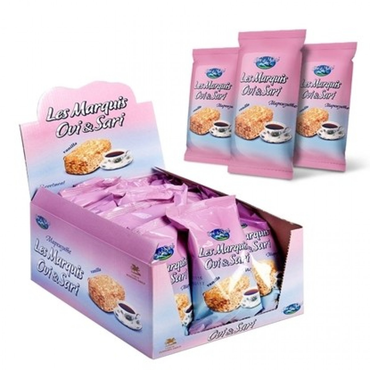 Състав: захар, питейна вода, ПШЕНИЧЕНО брашно, сироп от глюкоза, частично хидрогенирани мазнини(мазнини-палмова, СОЕВА, рапична, слънчогледова, емулгатори-сорбитан тристеарат, СОЕВ лецитин), нехидрогенирани растителни мазнини(мазнини- палмова, ший:емулгатори- моно и диглицериди на мастни киселини, СОЕВ лецитин, ароматизант)влагозадържащи агенти(глицерин, сорбитол), СУРОВАТКА на прах. AЛЕРГЕНИ : Глутен, Соя, Мляко.