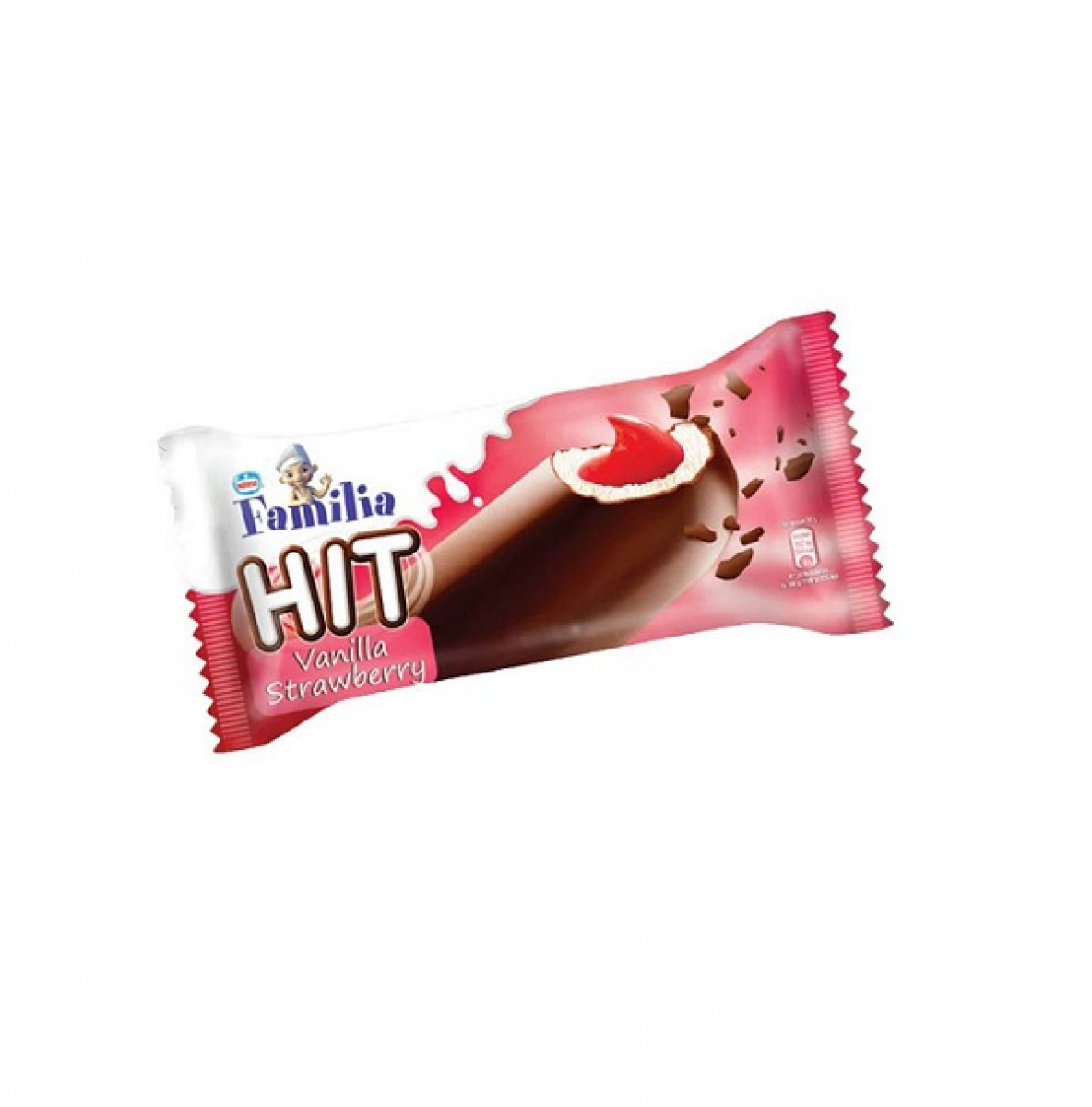 Състав: възстановено сухо обезмаслено мляко, вода, захар, глюкозен сироп, кокосово масло, суроватка на прах (от мляко), обезсолено краве масло (от мляко), сухо обезмаслено мляко, емулгатор (моно- и диглицериди на мастни киселини), стабилизатори (гума гуар, гума локуст бийн, преработени "Euchema" водорасли, гума ксантан, гума арабика), ароматизанти (съдържа ванилин), сироп ягода. Може да съдържа : глутен, яйца, соя и ядки.