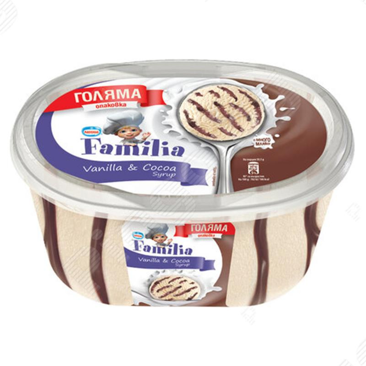 Състав: възстановено сухо обезмаслено мляко, вода, захар, глюкозен сироп, кокосово масло, суроватка на прах (от мляко), обезсолено краве масло (от мляко), сухо обезмаслено мляко, емулгатор (моно- и диглицериди на мастни киселини), стабилизатори (гума гуар, гума локуст бийн, преработени "Euchema" водорасли, гума ксантан, гума арабика),  ароматизанти (съдържа ванилин), карамелизиран захарен сироп. Може да съдържа : глутен, яйца, соя и ядки.