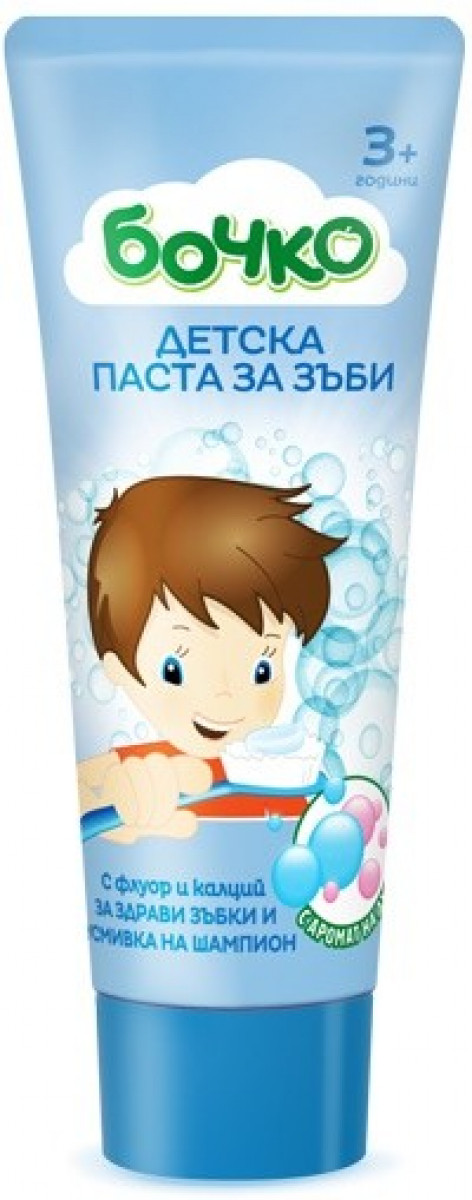 Специалната формула на пастата за зъби на марката Бочко се грижи за ежедневната хигиена на детските зъбки и венци. Продуктът заздравява зъбния емайл и повишава реминерализацията на зъбите с добавения калций. Пастата предотвратява развитието на кариес и се грижи за здравето на венците посредством включения флуор. Свежият вкус и приятният аромат помагат за приучаване към редовна устна хигиена.
