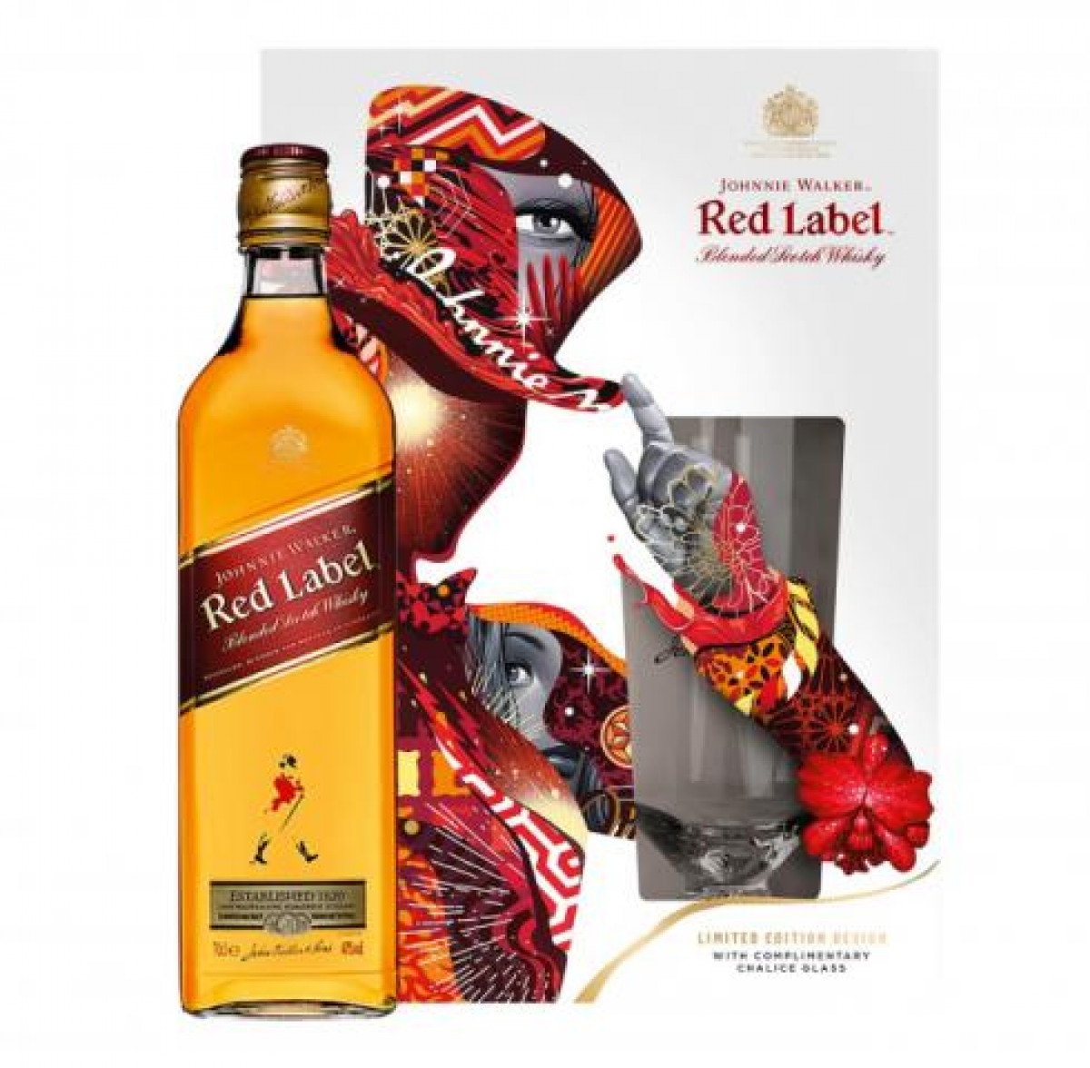 уиски джони уокър ред лейбъл 700мл с 2 чаши