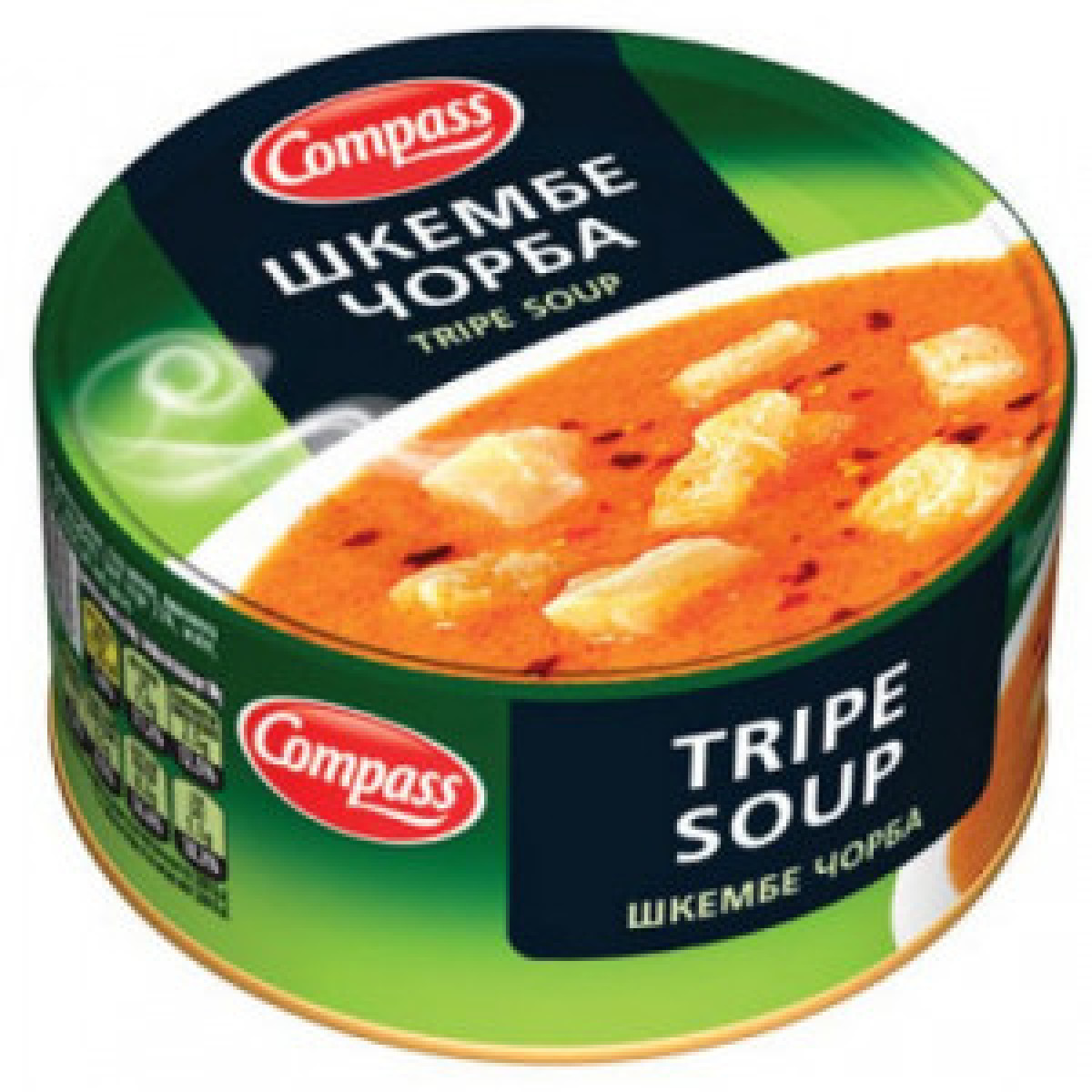 Състав: Говеждо шкембе 23%, вода, растително масло/ слънчогледово/, ПШЕНИЧЕНо брашно, сухо МЛЯКО, киселина: лимонена киселина, чесново брашно, сол, подправки