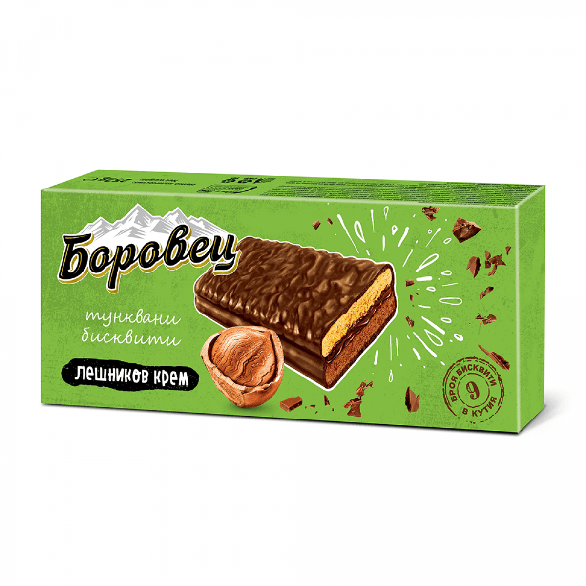 Състав: брашно, крем лешник 25% [глюкозо-фруктозен сироп, вода, растително масло (палмово), захар, суроватка на прах, какао на прах с намалено маслено съдържание, сгъстител: модифицирано нишесте (царевично), етилов алкохол, емулгатор: моно- и диглицериди на мастни киселини, паста от лешници 0,2%, консервант: калиев сорбат, киселина: лимонена, ароматизанти], какаова глазура 25% [захар, растително масло (палмово), обезмаслено мляко на прах, какао на прах с намалено маслено съдържание 1%, суроватка на прах, емулгатор: соев лецитин, ароматизант: ванилин], захар, растително масло (палмово), глюкоза, какао на прах с намалено маслено съдържание, суроватка на прах, сол, емулгатор: соев лецитин, набухватели (натриев хидроген карбонат, амониев хидроген карбонат, натриев кисел пирофосфат), ароматизанти.