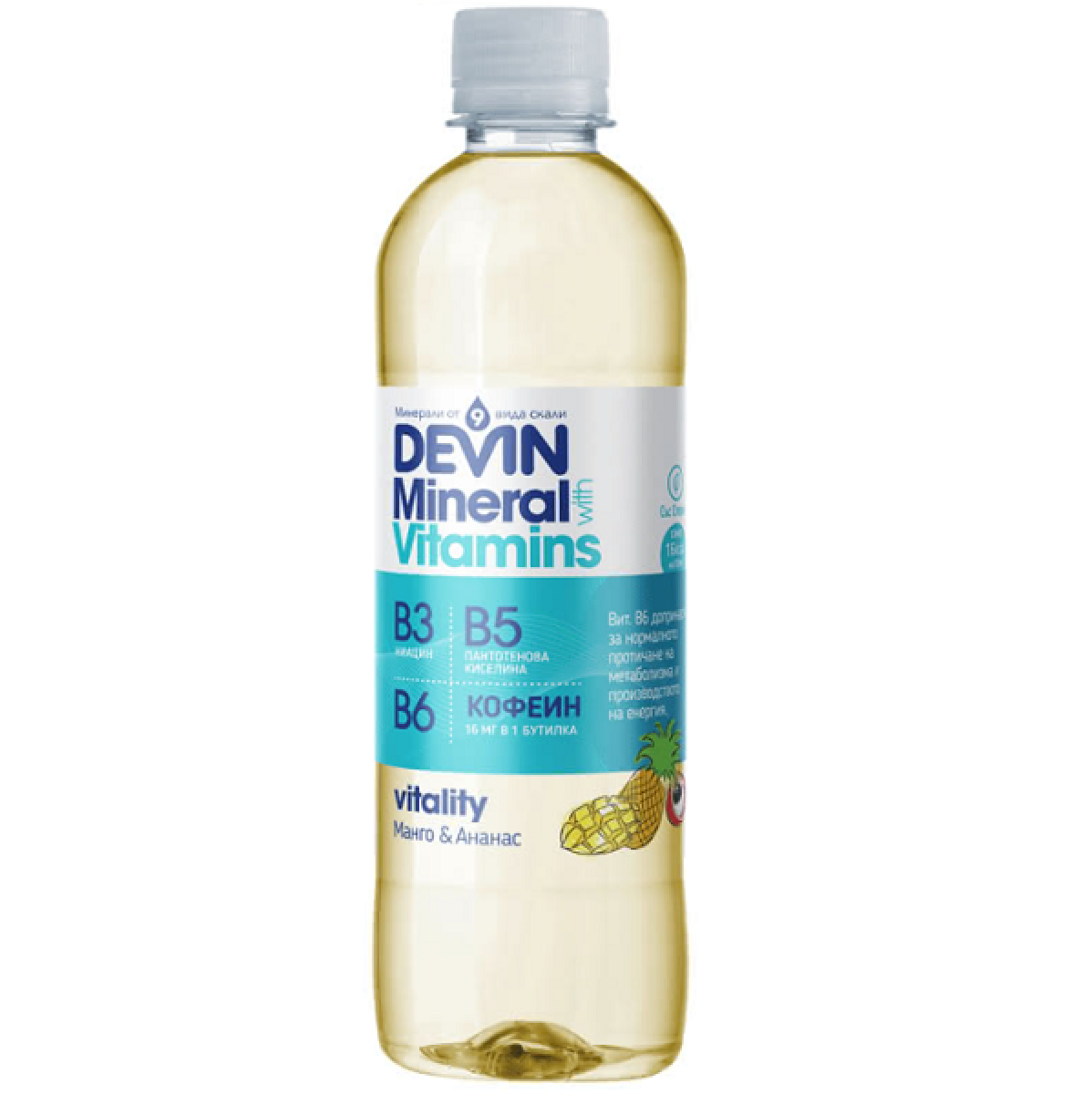 - Витаминизирана Вода Девин - Манго и Ананас с Кофеин - 0,425 мл.