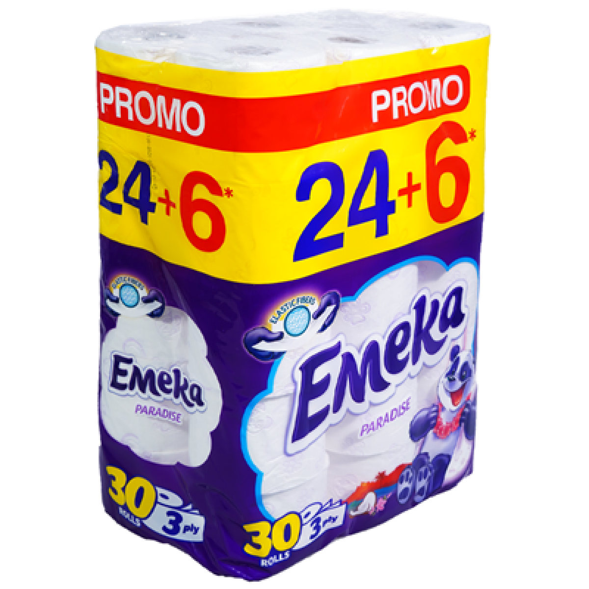 Emeka има снежна белота, интересни мотиви в нежни цветове, съчетани с приятни аромати.