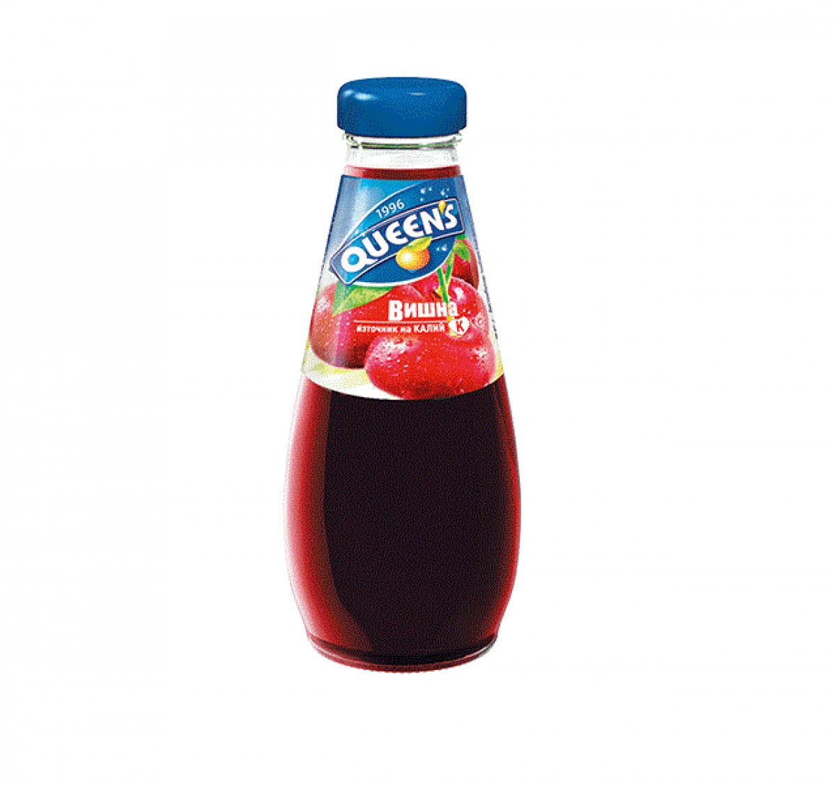 Състав: Вода, сок от концентриран сок (20%) вишна, захар (D) и/или глюкозо-фруктозен сироп (G)*, регулатор на киселинността-лимонена киселина, оцветител: концентрат от черен морков, екстракт от мента (0.015%), ароматизант.