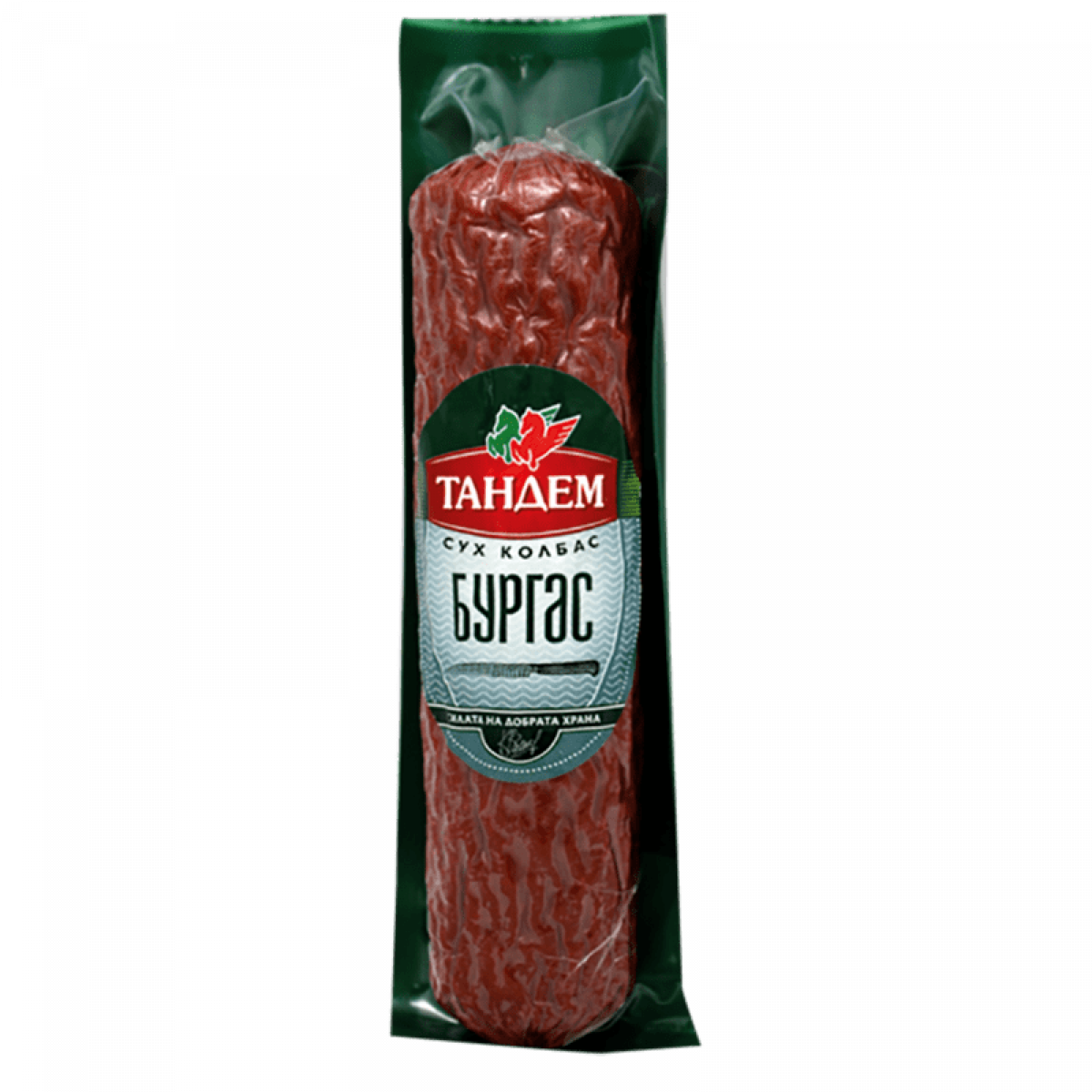 Състав: свинско месо, сланина, свински колаген, говеждо месо, сол, овесени фибри, смес от подправки и екстракти от подправки, горчица /синап/, захар, декстроза, малтодекстрин, консервант: натриев нитрит, стабилизатори: дифосфати, овкусител: мононатриев глутамат, антиоксиданти: ериторбинова киселина, натриев ериторбат, киселинен регулатор: глюконо-делта-лактон, ароматизант, трансглутаминаза, оцветител: кармин.