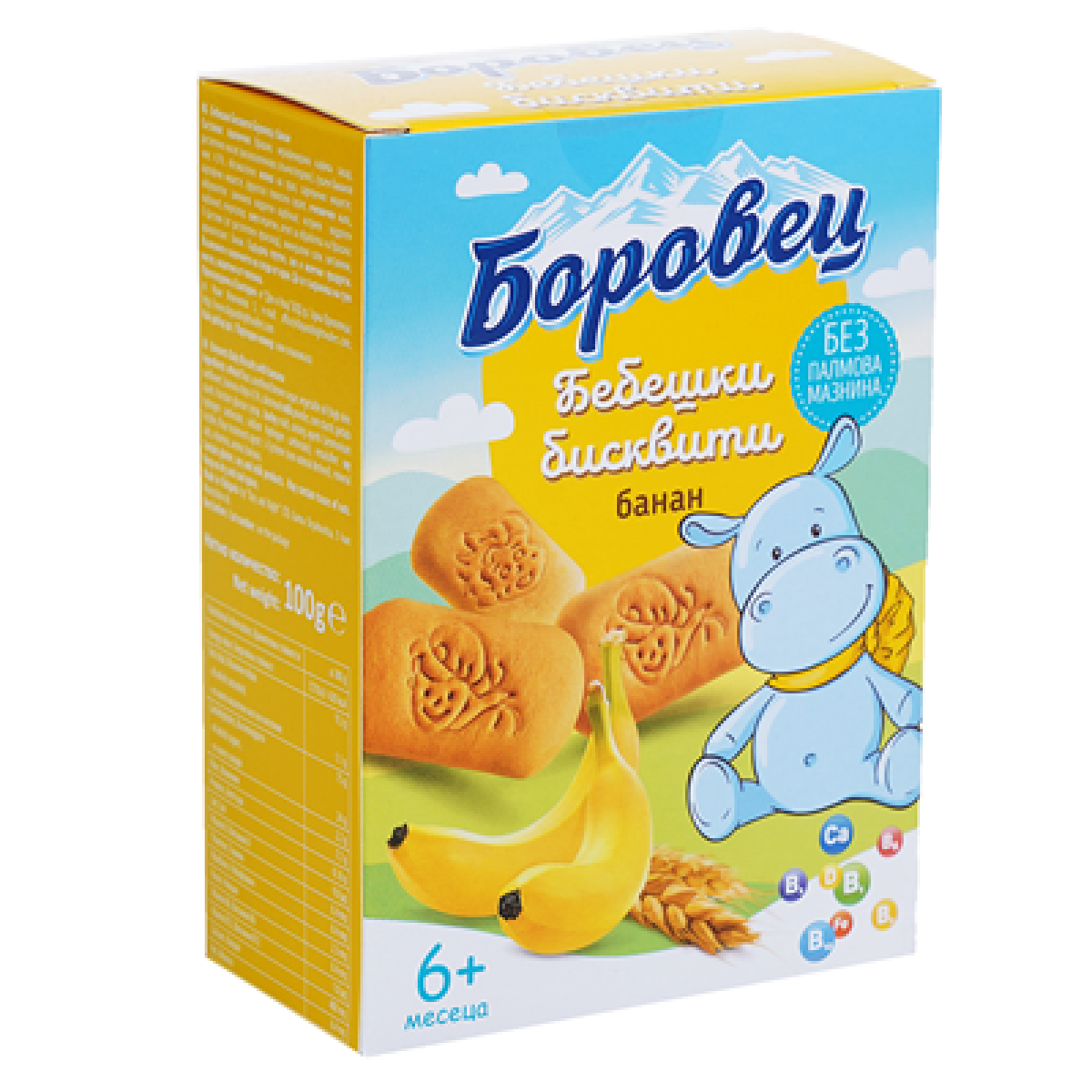 Състав: Пшенично брашно, захар, царевично нишесте, краве масло 8%, растителна мазнина палмова, сухо пълномаслено мляко 1,6%, набухватели: амониев бикарбонат, натриев бикарбонат, ароматизант, декстроза, калциев карбонат, витамин В1, витамин В2, витамин В6, витамин В9, витамин В12. Може да съдържа соево брашно, яйчен меланж.