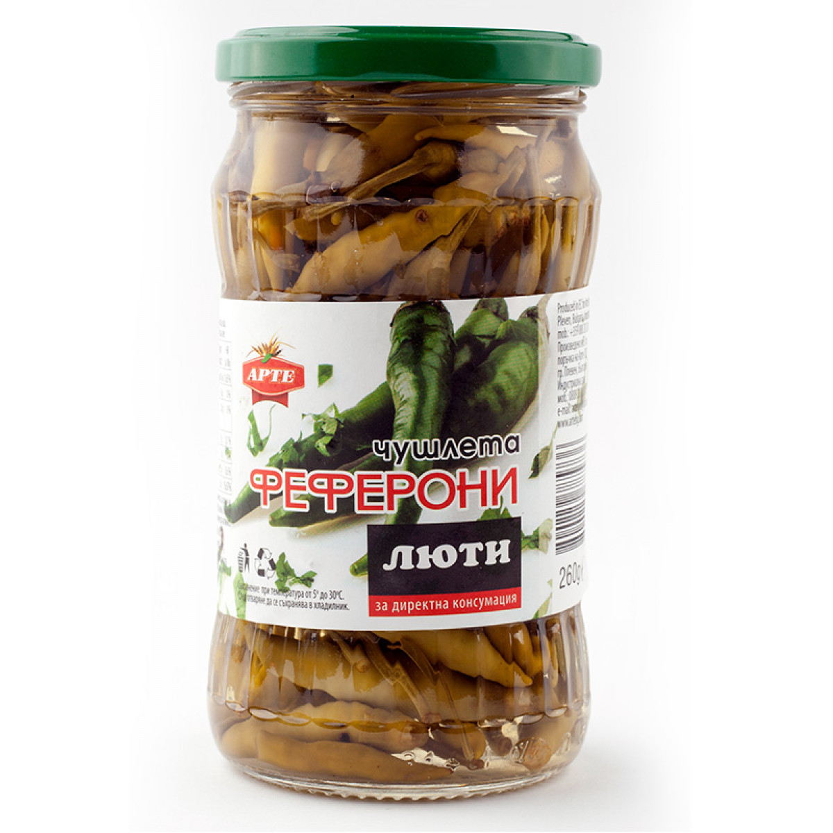 Състав: люти чушки Феферони, вода, сол, оцет.