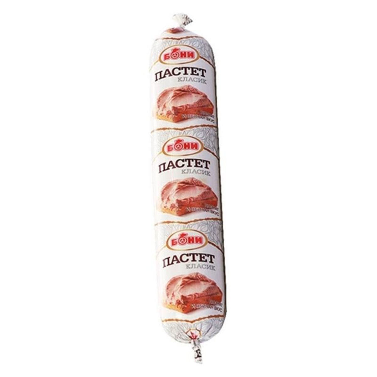 Състав: Свинско месо, свински черен дроб, сланина, свински кожички, нитритна сол (трапезна сол, консервант : натриев нитрит), картофено нишесте, емулгатор : моно и ди глицериди на мастните киселини, стабилизатор : полифосфати, ДЕКСТРОЗА, подправки, оцветител : кармини.