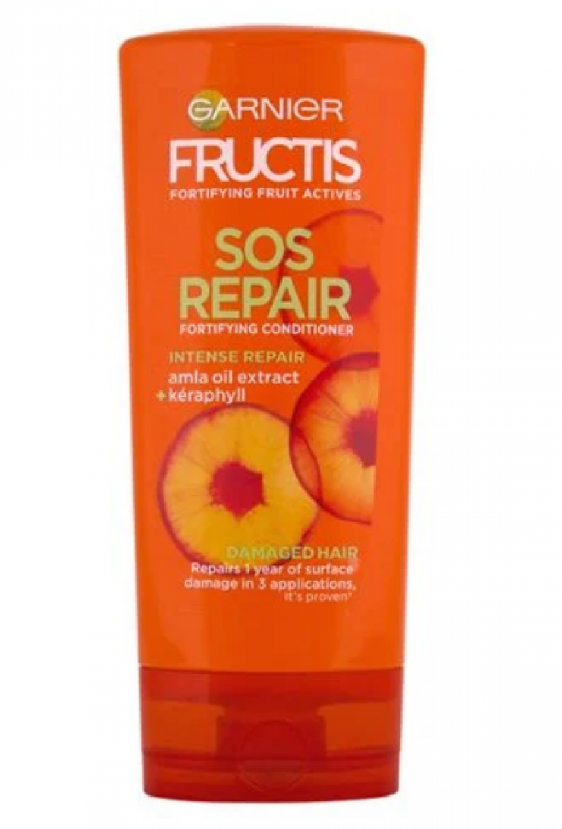 Балсамът на Garnier от серията SOS Repair е обогатен с екстракт от масло от индийско грозде и керафил. Той е подходящ за увредена коса, като запълва несъвършенствата по косъма, получени в резултат на външни влияния и възстановява повърхността му. Увреждането на повърхността на косата, което се получава в рамките на една година, е възстановено само след три използвания. Създава невидим щит срещу вредните фактори, като топлина, прах и мръсотия.Иновативната му формула съдържа витамини и плодови екстракти, които дълбоко подхранват косата и ѝ възвръщат здравия вид.
