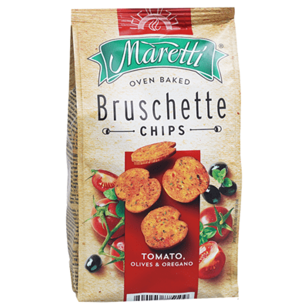 Състав: Пшенично брашно, растително масло (палмов олеин, антиоксидант: розмаринов екстракт), царевичен екструдат, подправка Домат, маслини и риган 5.5% (декстроза, сол, царевично нишесте, домат на прах 7.6%, овкусител: натриев глутамат; лук на прах, малтодекстрин, чесън на прах, регулатор на киселинност: лимонена киселина; натриев ацетат, лактоза, сух магданоз, антислепващ агент: силициев диоксид; хидролизиран растителен протеин (соя), сух риган 0.5%, маслини 0.5% ароматизанти), сол, обезмаслено мляко на прах, захар, сух глутен, мая, стабилизатор: гума гуар; декстроза, емулгатор:естери на моно- и диацетилна винена киселина с моно- и диглицериди на мастни киселини.