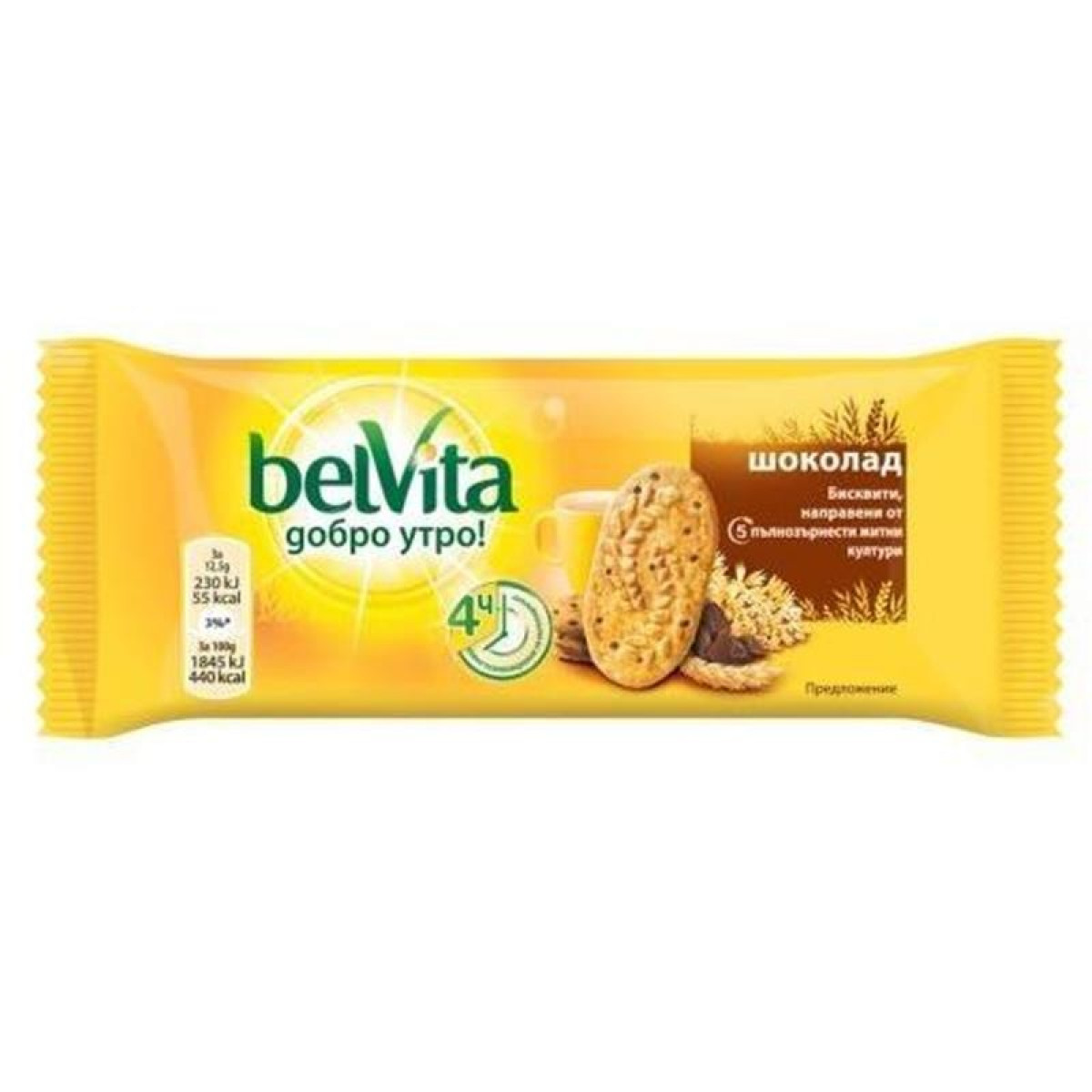 бисквити пълнозърнести белвита закуска с шоколад 50гр.