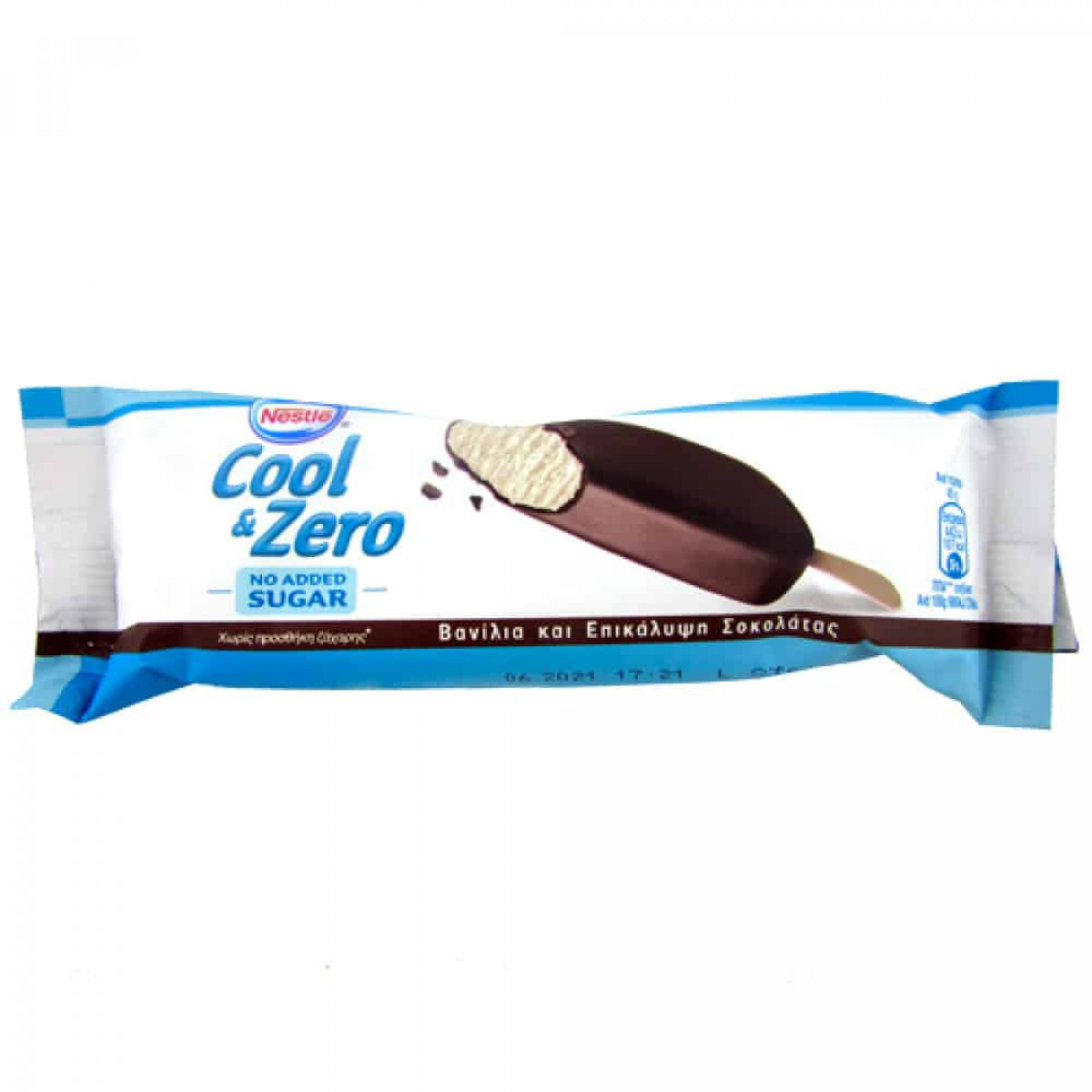 Сладолед с вкус на ванилия покрит с шоколад (40%), съдържащ подсладител. Без добавена захар. СЪДЪРЖА НАТУРАЛНА ЗАХАР.