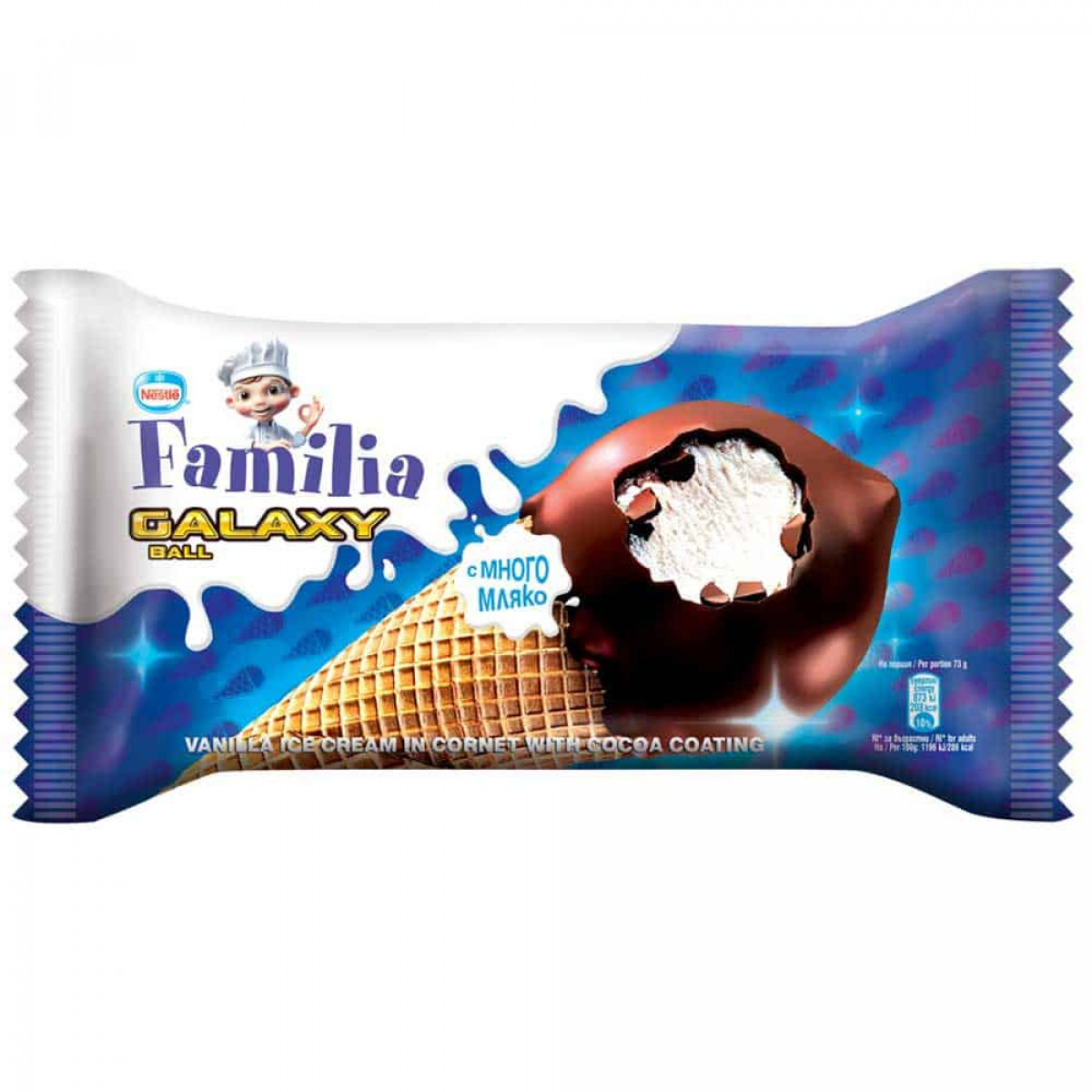 Състав: възстановено обезмаслено мляко, захар, вода, глюкозен сироп, суроватка на прах (от мляко), пшенично брашно, яйца на прах, какаова маса, картофено нишесте, емулгатор (моно- и диглицериди на мастни киселини, слънчогледов лецитин), какаово масло, стабилизатори (гума гуар, гума локуст бийн, сорбитол, преработени "Euchema" водорасли, гума ксантан),  оцветител (карамел (амониев сулфит)), пълномаслено мляко на прах, сухо обезмаслено мляко, ароматизанти, набухвател (динатриев дифосфат, натриев хидроген карбонат), краве масло (от мляко), сол, яйчен жълтък на прах, декстроза. Може да съдържа соя и ядки.