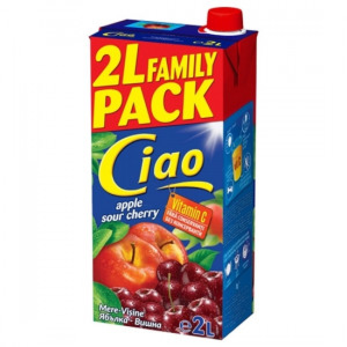 Състав: вода, захар (D*) и/или глюкозо-фруктозен сироп (G)*, концентрирани сокове (4%) от: ябълка (3%) и вишна (1%), регулатор на киселинността: лимонена киселина и натриеви цитрати, концентрат от черен морков оцветяване, Витамин C, ароматизанти, подсладители: цикламати, захарини.