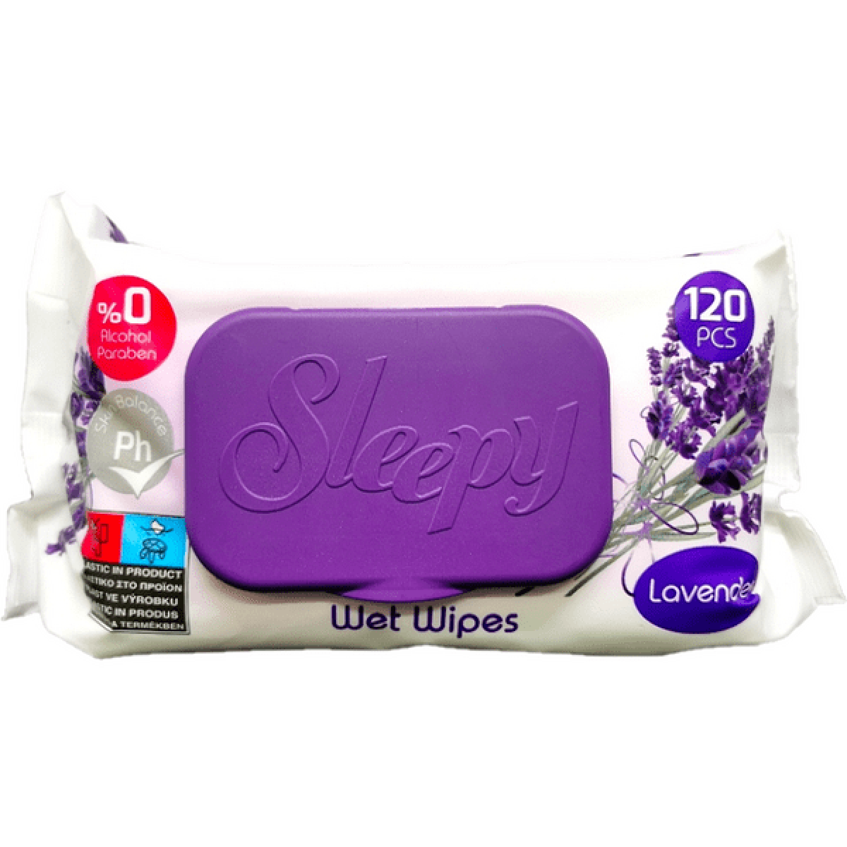 Мокрите кърпи Sleepy Lavender предоставят нежна грижа за ръце, лице, меки тъкани и тяло.