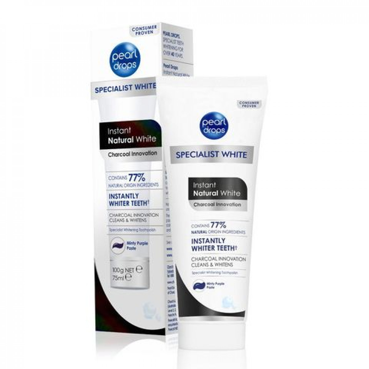 Pearl drops е избелваща паста за зъби с формула с активен въглен, която прави зъбите видимо бели и ще Ви осигури дълготраен ефект. Активният въглен има детоксикиращи и почистващи свойства. С флуорид. Пастата подпомага премахването както на плаката, така и не петната по зъбите.