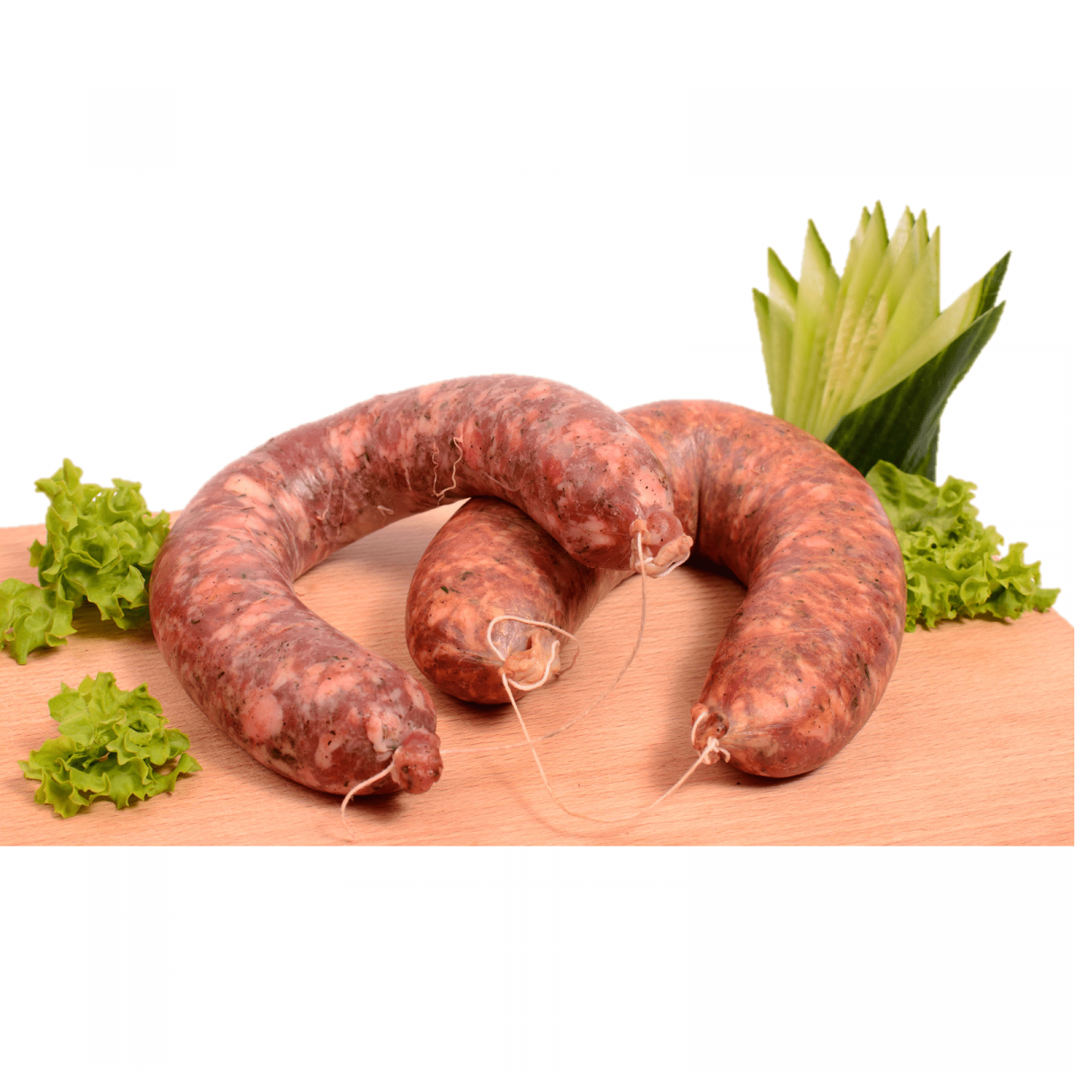 Състав: телешко месо, свинско месо и сланина, кимион и черен пипер, опаковано в естествено черво, което прави вкуса много по-добър.