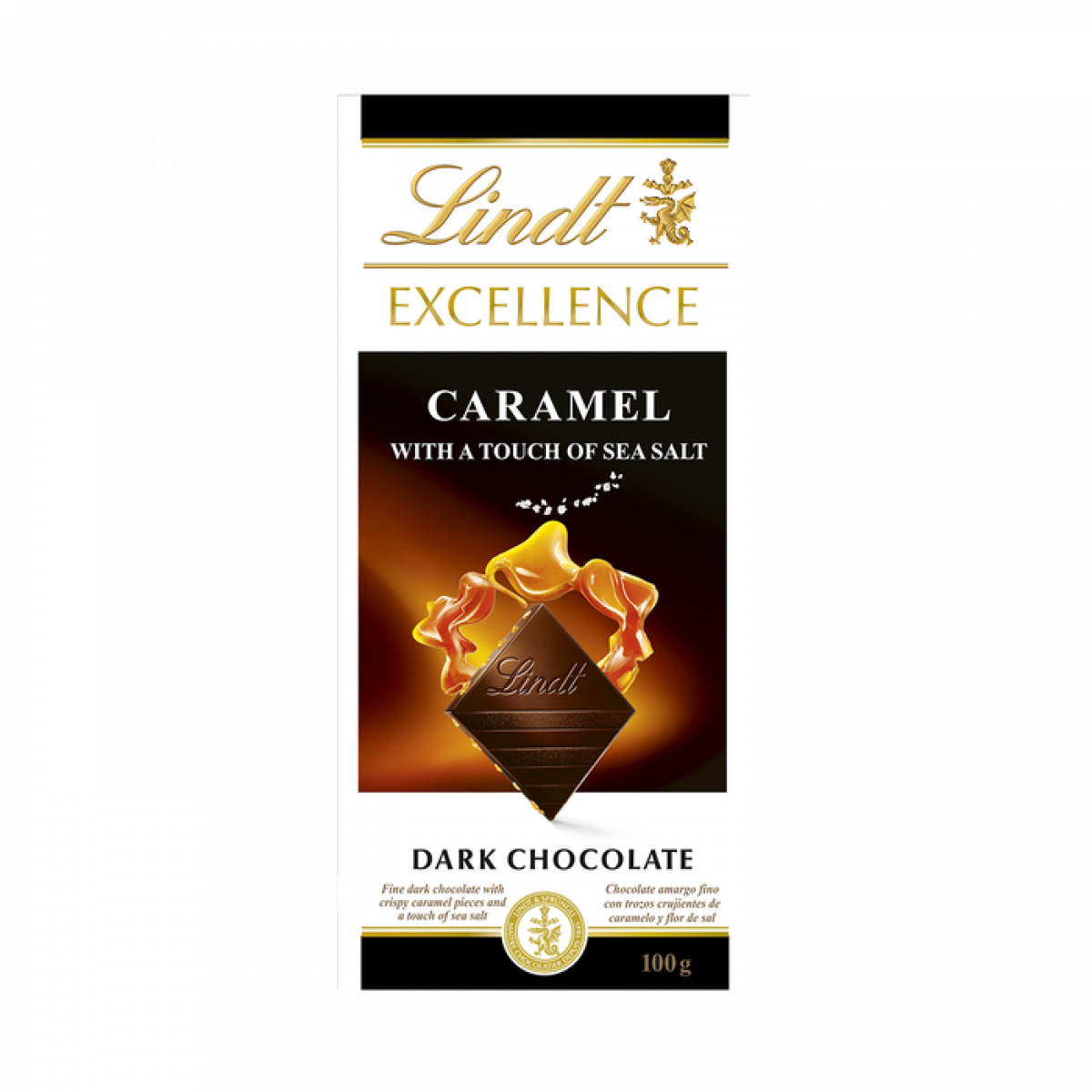 Шоколад Lindt Excellence Карамел и морска сол - разкошен шоколад с деликатни парченца карамел и щипка кристали нежна морска сол.