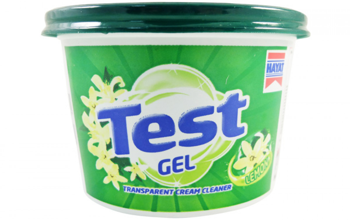 Test Gel гел за почистване на съдове. Концентриран мощен препарат за ръчно измиване на съдове с аромат на свеж лимон.