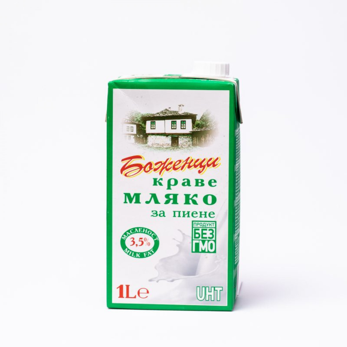 Краве мляко „Боженци” UHT е произведено за директна консумация от свежи краве млека. Предлага се в модерна опаковка, която осигурява възможност да се съхранява до 180 дни от датата на производство.