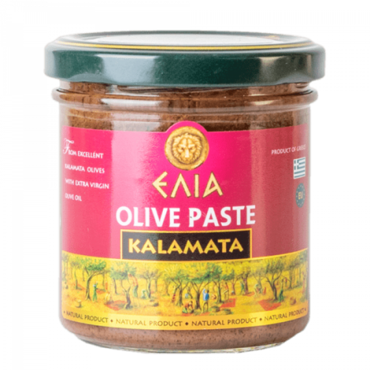 Състав: паста от маслини каламата 93, 0,72, сол, необработено маслиново масло екстра вържин 0, 0,05, лимонена кислина, аскорбинова киселина, босилек 0, 0,02, каперси, чесън, риган.