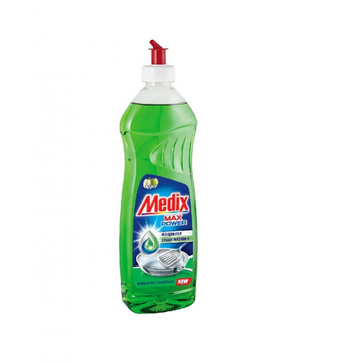 Ултра концентриран препарат за измиване на съдове MEDIX – мощен срещу мазнини и засъхнали остатъци от храна. Активните съставки и дълготрайна пяна осигуряват ефикасно измиване за блестящи от чистота съдове и прибори. Със свеж аромат на ябълка.