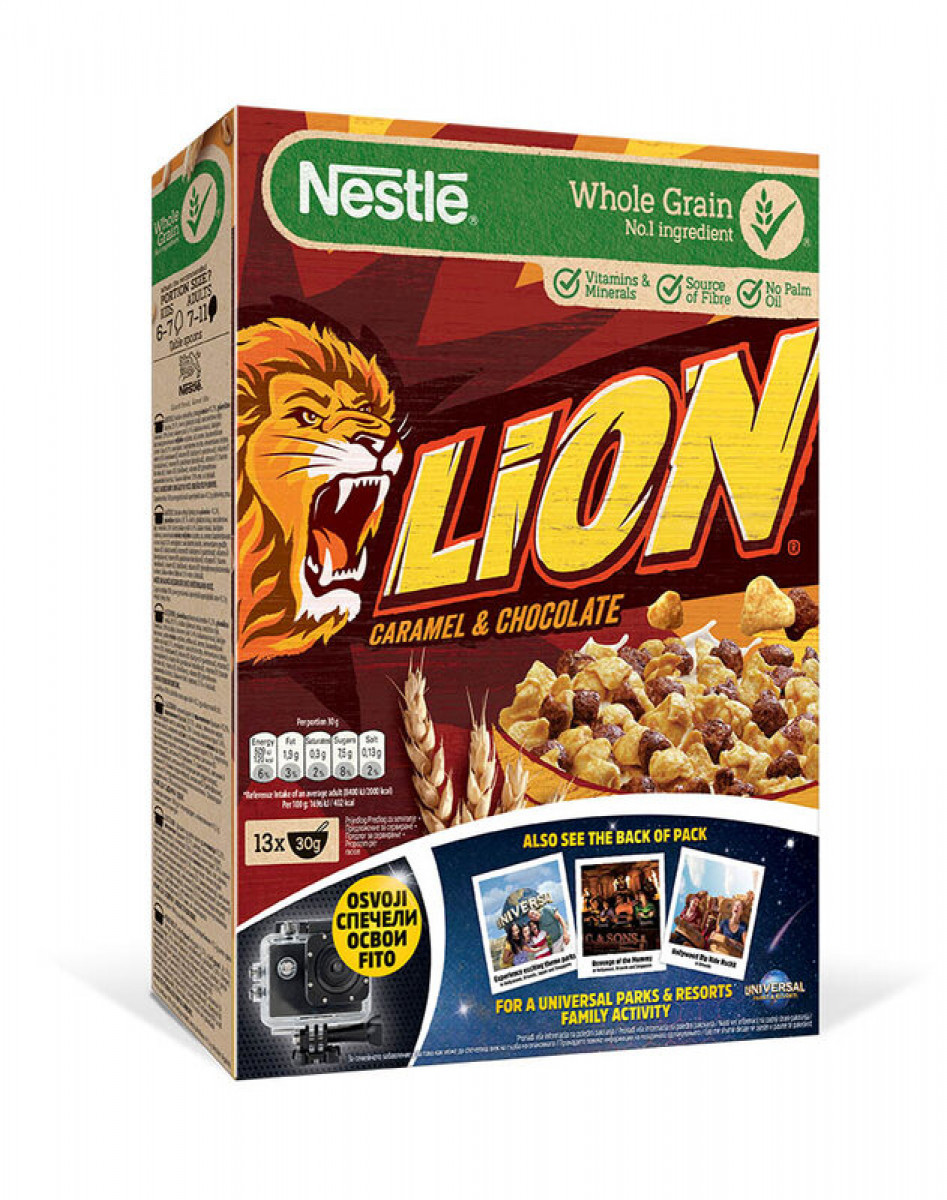 Състав: Захар, растителни мазнини, какаово масло, суроватъчна пудра, обезмаслено мляко на прах, пшенично брашно, какаова маса, дехидратиранa млечнa мазнинa, сметана на прах (2%), какао на прах (0,7%), растително масло, емулгатори (соев лецитин, слънчогледов лецитин), лешникова паста, глюкозо-фруктозен сироп, пшеничено нишесте, набухватели (калиев хидроген карбонат, амониев хидроген карбонат, натриев хидроген карбонат), сол, аромати. Съдържа пшеница, глутен, мляко, лешници, соев компонент. Може да има други ядки.