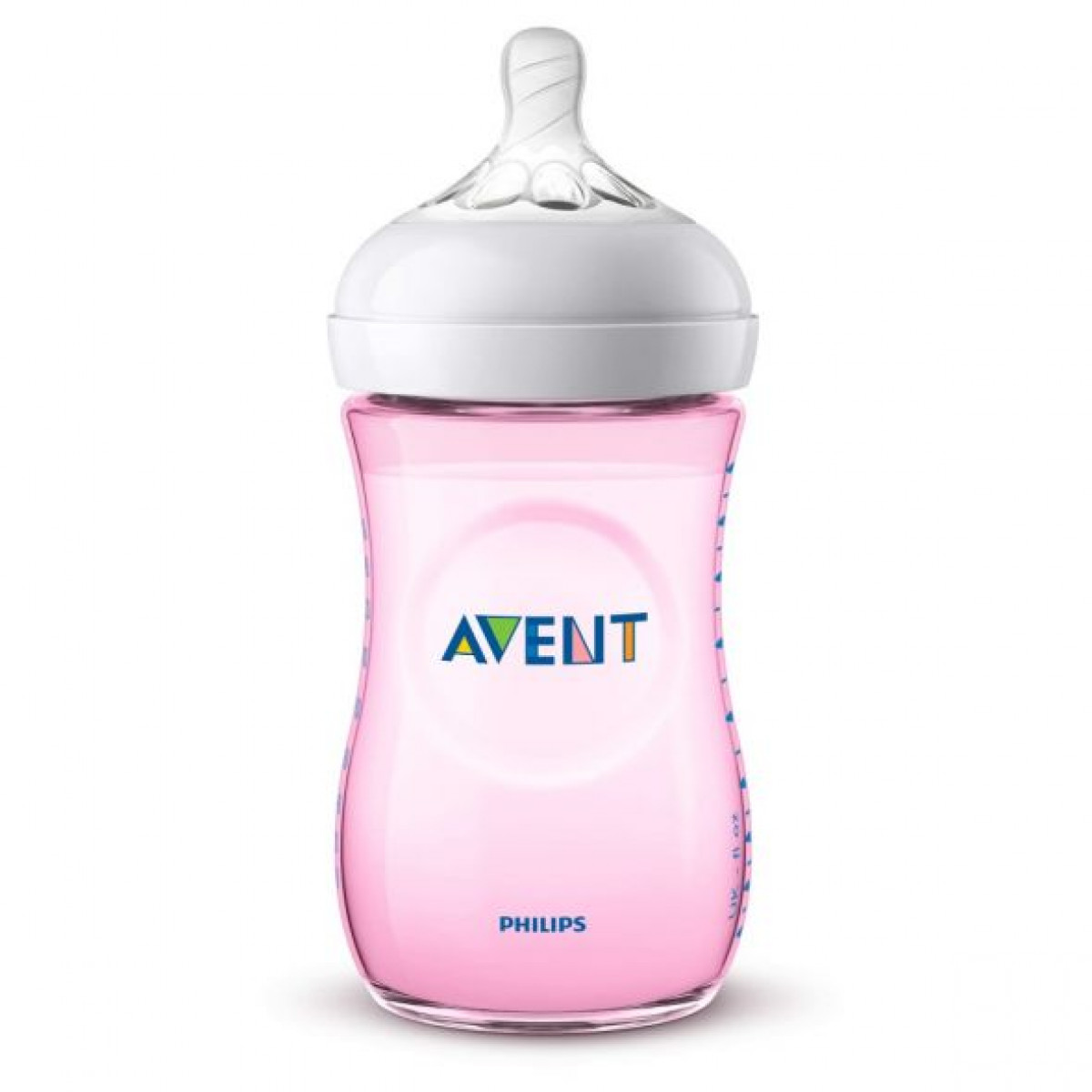 Авент бутилка за бебе Natural 260 мл. - Розов цвят