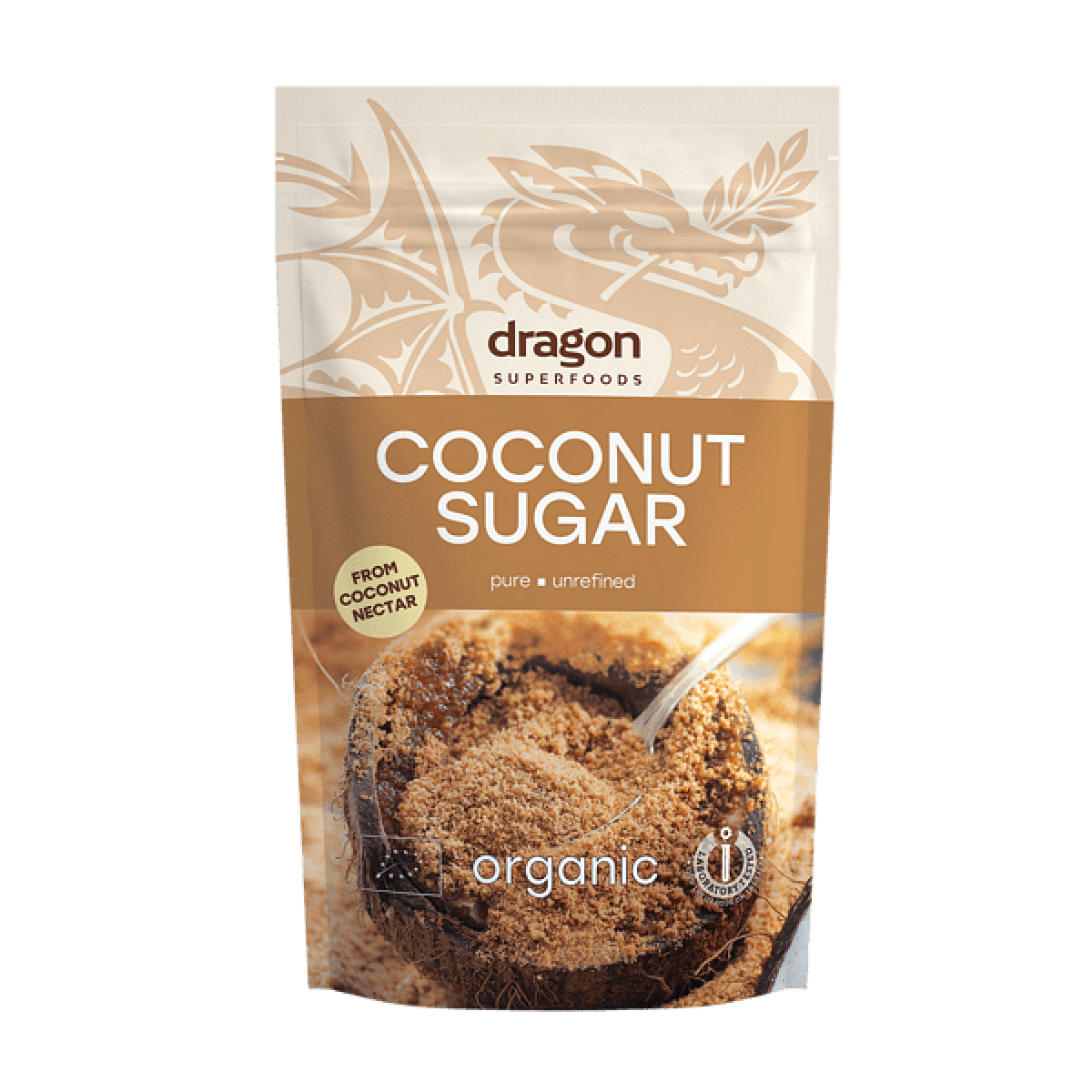 Био кокосова захар на Dragon Superfoods е натурална пълноценна храна. Тя е естествен подсладител богат на аминокиселини (съдържа 16 аминокиселини), от тях с най-високо съдържание- глутамин. Кокосовата захар, също така е богата на витамини, включително есенциалните витамини В-комплекс. Като допълнение съдържа минерали много важни за функциите на организма. Кокосовата захар е с нисък гликемичен индекс.