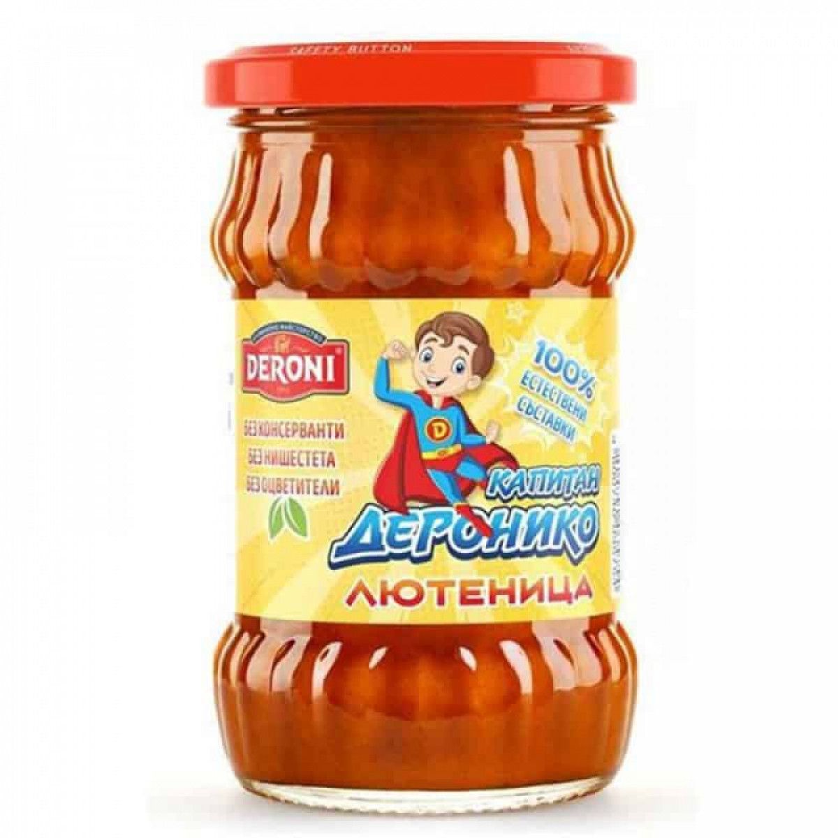 Капитан Деронико – кулинарният супергерой на Дерони! Лютеница с мек и приятен вкус от 100 % естествени съставки – финосмлени домати, пиперки и моркови в пленителен синхрон с подбрани естествени подправки.